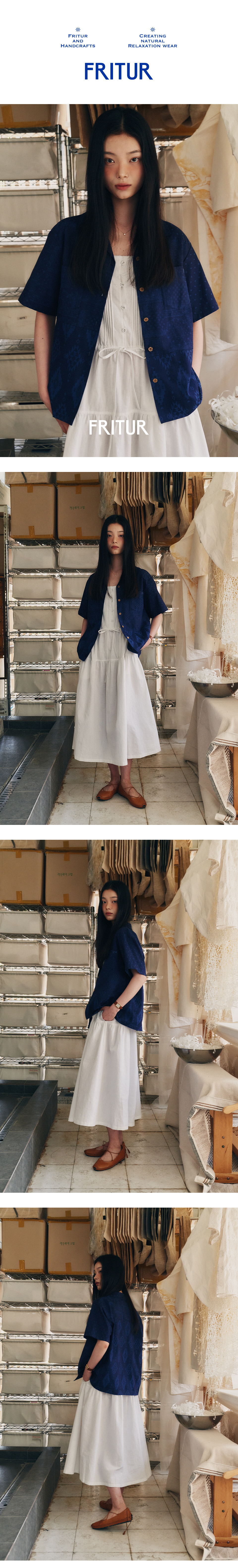 FRITUR Pattern Patchwork Shirt Navy