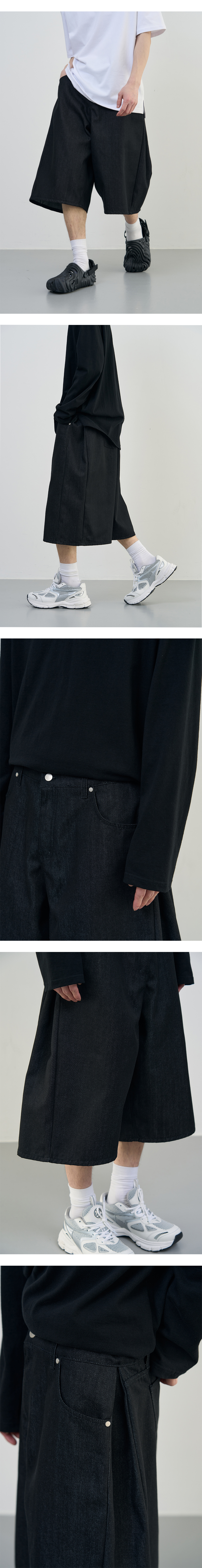 어레이드 인버티드 플리츠 버뮤다 데님 팬츠 블랙