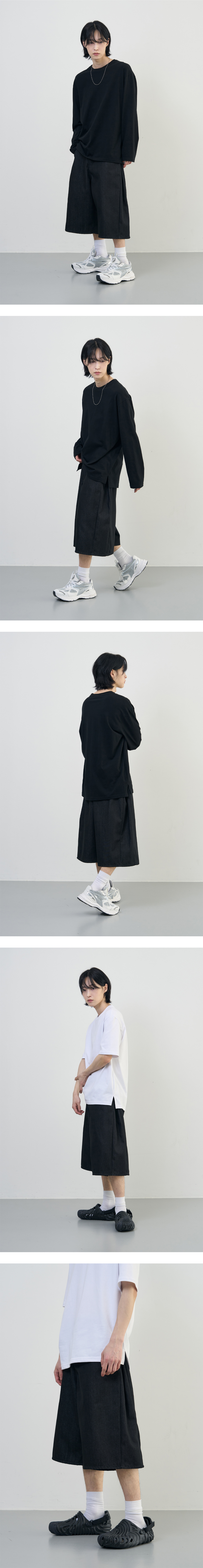 사이드 턱 디테일로 볼륨감 있게 떨어지는 버뮤다 기장 팬츠입니다. 다양한 스타일링에 활용할 수 있는 자연스러운 실루엣에 초점을 맞춘 제품으로 오랜 기간 다양한 코디에 범용성 높게 활용하실 수 있습니다. · 뛰어난 안착감을 위한 고탄력 허리 밴딩 · YKK 지퍼를 사용하여 부드러운 슬라이딩 · 소재 특유의 탄성으로 흐트러짐 없이 자연스레 떨어지는 소재감 · 트렌티한 사이드 턱 디테일과 적절한 기장감으로 다양한 연출 가능