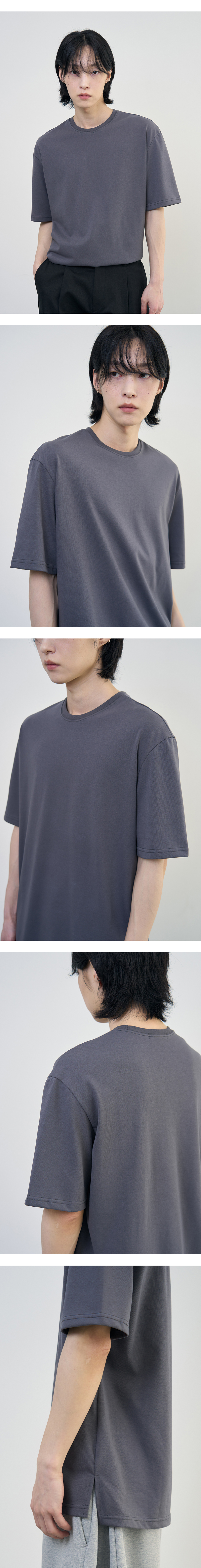 어레이드 소프트 사이드 슬릿 라운드 티셔츠 다크그레이
