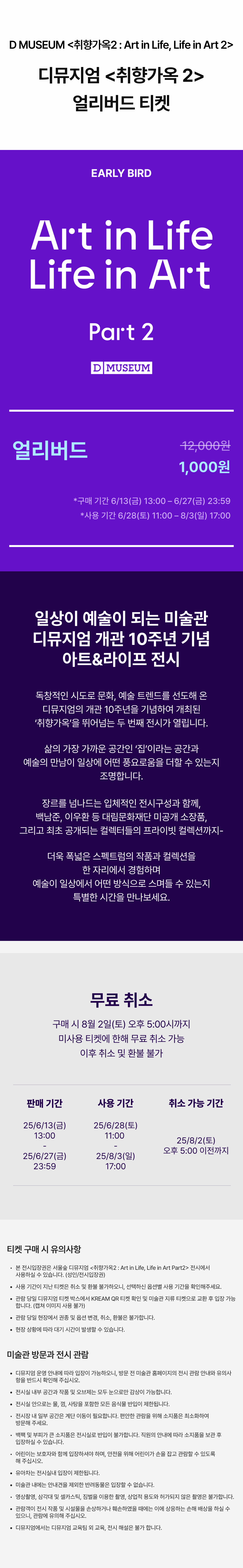 구매하신 티켓은 재판매 및 협의 없이 타채널에서 이벤트 프로모션으로 이용이 불가합니다.