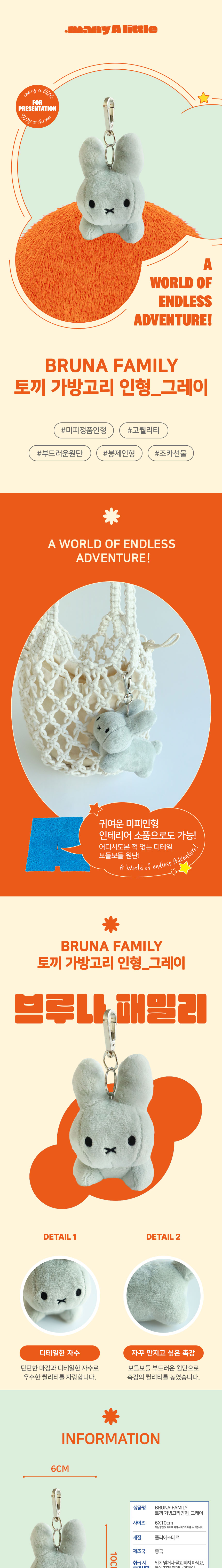 매니어리틀 브루나 패밀리 토끼 가방고리인형 그레이