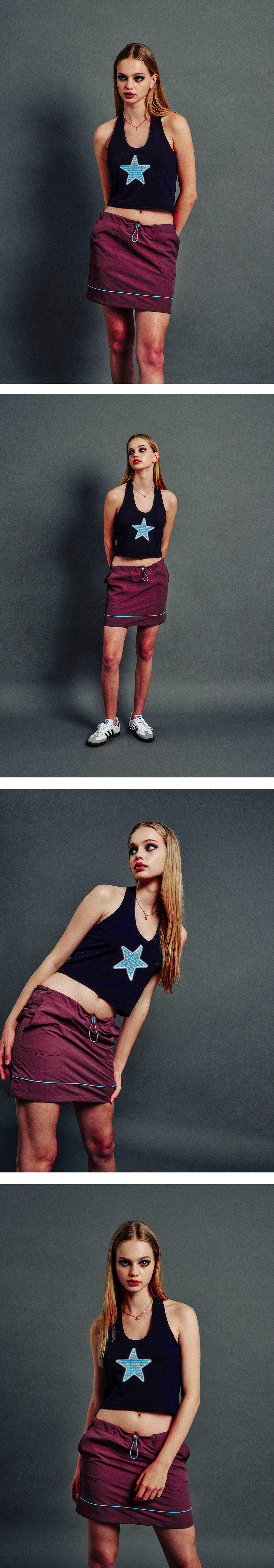 ☆ information - 4 pockets - mnmpair logo - one-size (strings) - mnmpair 자수 로고, 프리사이즈 (스트링), 4개의 포켓 ☆ Matrerial & Care Nylon 100%, Poly 100% Gentle hand wash / Dry cleaning 부드러운 손세탁 / 드라이클리닝 ☆ Size waist 39 hip 46 hem 46.5 length 35 ☆ Model size Height 167cm Bust 83cm Waist 60cm Hips 90cm Wearing Size Free