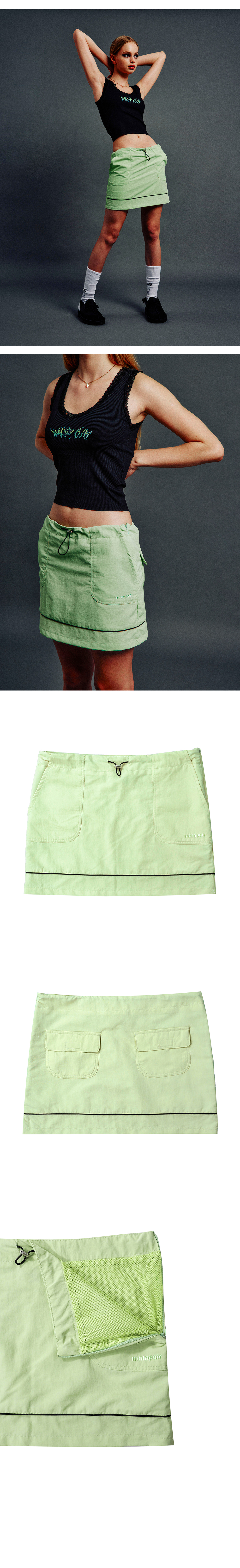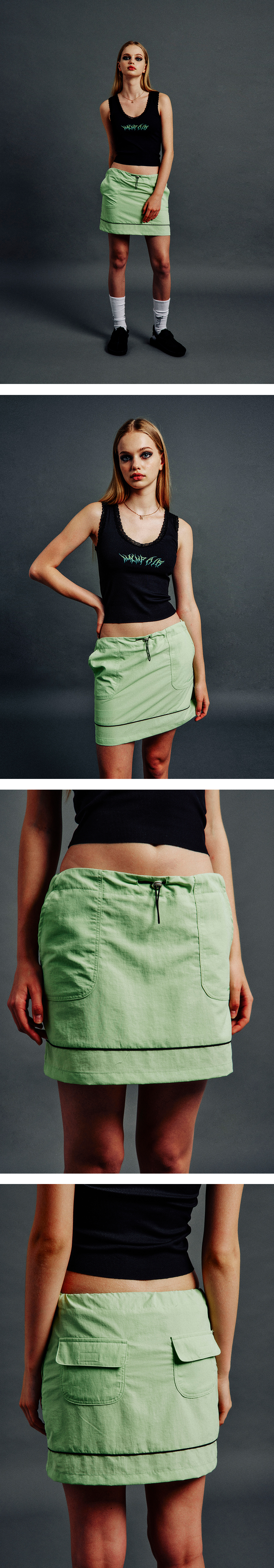 ☆ information - 4 pockets - mnmpair logo - one-size (strings) - mnmpair 자수 로고, 프리사이즈 (스트링), 4개의 포켓 ☆ Matrerial & Care Nylon 100%, Poly 100% Gentle hand wash / Dry cleaning 부드러운 손세탁 / 드라이클리닝 ☆ Size waist 39 hip 46 hem 46.5 length 35 ☆ Model size Height 167cm Bust 83cm Waist 60cm Hips 90cm Wearing Size Free