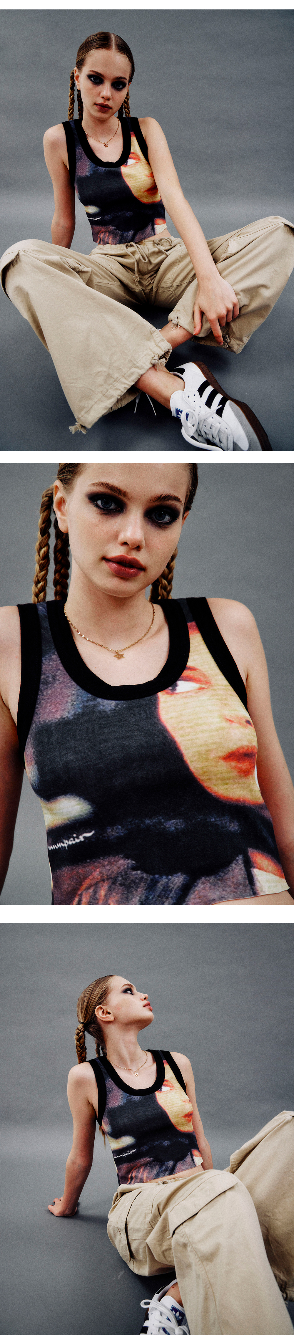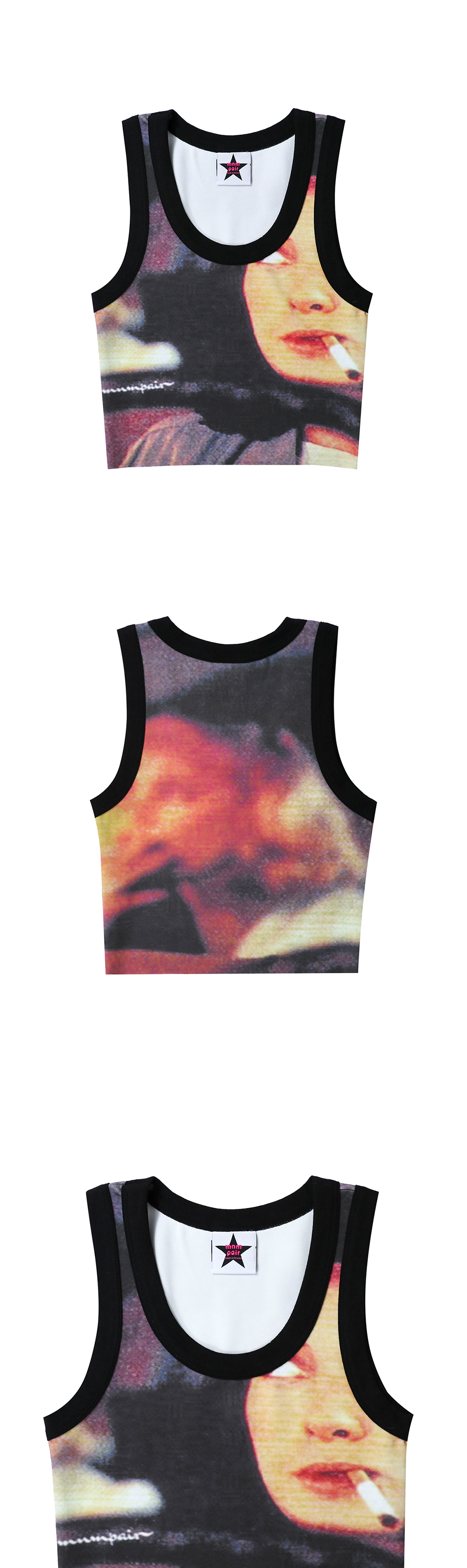 ㅍ☆ information - digital printing - color matching rib - 디지털 프린팅, 배색 립 ☆ Matrerial & Care Modal 47% Poly 46% Span 7% Gentle hand wash / Dry cleaning 부드러운 손세탁 / 드라이클리닝 ☆ Size S shoulder 25 chest 33 hem 30 armhole 20 length 40.5 M shoulder 28 chest 35 hem 33.5 armhole 20 length 40 ☆ Model size Height 167cm Bust 83cm Waist 60cm Hips 90cm Wearing Size Small