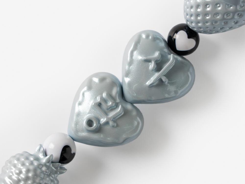 w 4 x d 2 x h 36cm (±2cm) / Resin with urethane paint/ Mixed media PBG 전속작가 수린의 "mojo mojo 스트랩 & 키링"이다. 핸드폰 또는 전자기기에 부착하여 스트랩(키링)으로 활용이 가능하며, 가방 또는 의류에 걸어 개성있는 악세서리로도 활용이 가능하다. 작가는 존재하지 않는 아름다운 형태의 조각들을 현실로 꺼내고 디지털 아트를 기반으로 한 다양한 아트워크를 제작하는 동시에 3D 프린팅을 활용한 오브제 작업들을 다룬다. 이미 국제적인 아트씬에 많은 사랑을 받고 있는 수린 작가의 아트 굿즈를 통해 반복적인 일상 속에서 사랑이 가득한 행복감을 느낄 수 있기를 바란다. “제 조각들은 각자가 유일한 문법으로 인정받고 싶어 하는 춤을 춰요. 그러나 데이터를 저장해 똑같이 구현 가능하고, 언제든 복제할 수 있다는 점이 모순적이죠. 저는 이러한 모순을 갖고 놀기도 하고, 아름다움을 향하는 필사적 조각의 몸짓을 포착하기도 합니다.” - 수린