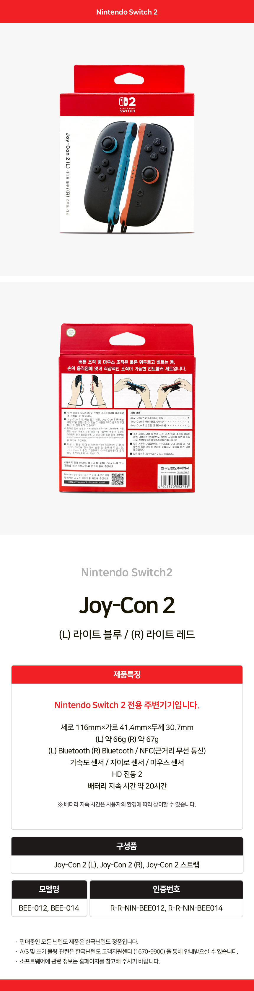 닌텐도 스위치 2 조이콘 라이트 블루/레드