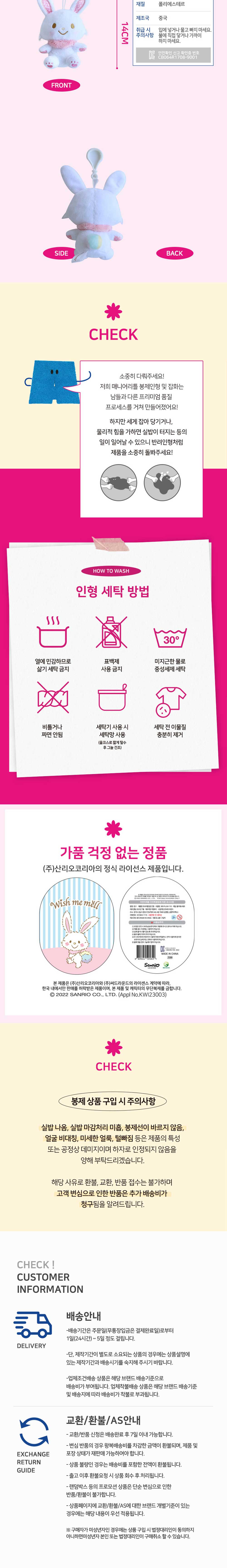 매니어리틀 산리오 위시미멜 가방고리인형 13cm