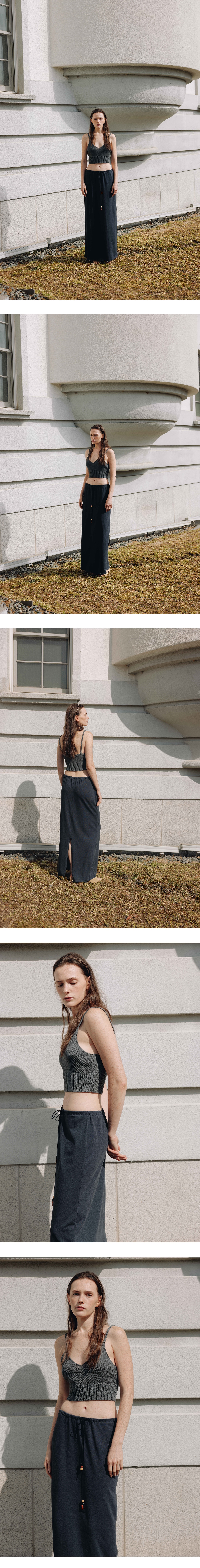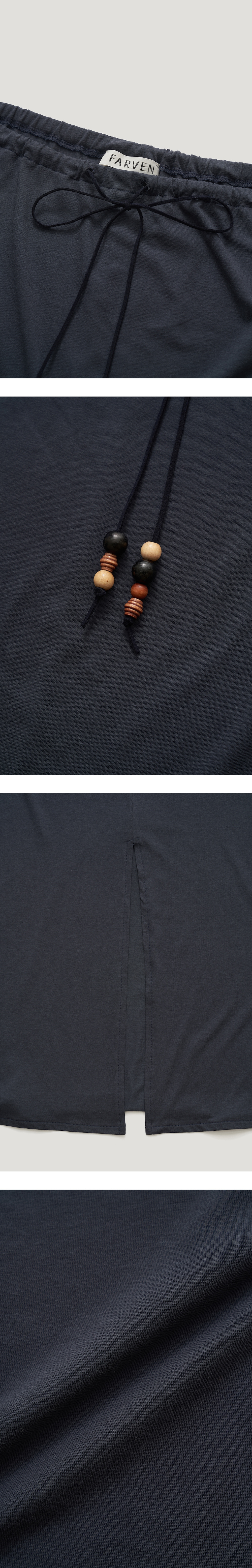 베이직한 디자인에 드로스트링 디테일이 돋보이는 롱스커트입니다. 전체 적으로 루즈한 실루엣에 얇은 소재감이 내추럴한 무드를 강조해주며 코튼 /모달 혼방소재로 탄탄하고 견고하며 소프트한 터치감이 특징인 제품입니 다. 허리에 스웨이드소재의 스트링과 우드소재의 비즈볼디테일이 달려있 으며 사이즈에 맞게 조절이 가능하여 편안하고 안정감있는 착용이 가능합 니다. MEMO 4WAY MODAL T-SHIRT와 셋업으로 착용이 가능합니다. - 우드비즈 특성상 컬러와 무늬 패턴이 다를 수 있습니다. 이점은 불량사유가 아니므로, 교환 및 반품사유에 해당되지 않습니다. VLADA wearing a size FREE. MODEL : HEIGHT 173 / BUST 39.5 / WAIST 30.5 / HIPS 44.5