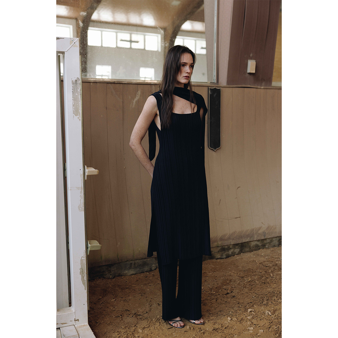 기본 베이직 라인의 플리츠 팬츠 입니다.얇은 원단에 주름을 가공하여 제 작된 아이템으로 안감이 있어 비침없이 시원하게 착용이 가능하며 은은한 광택감과 안정적인 고급스러운 실루엣으로 어느 착장에도 잘 어울리는 아 이템입니다.신축성이 우수해 사이즈애 구애받지 않고 편안한 착용감을 줍 니다. VLADA wearing a size FREE. MODEL : HEIGHT 173 / BUST 39.5 / WAIST 30.5 / HIPS 44.5