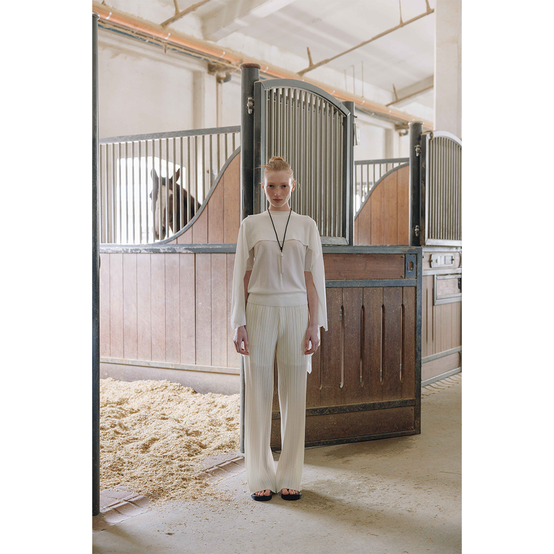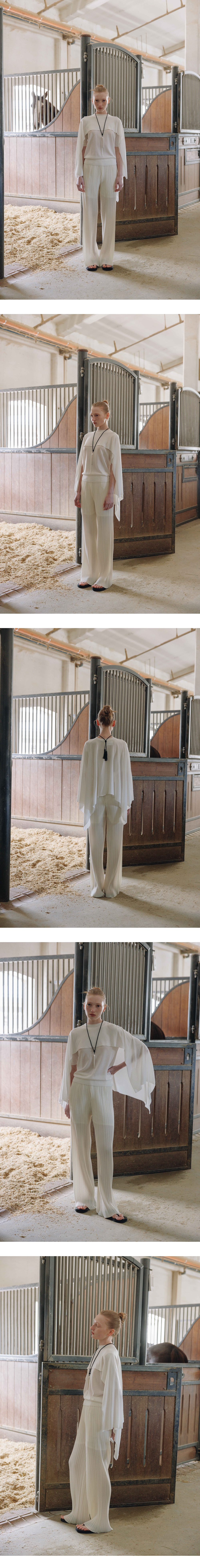 기본 베이직 라인의 플리츠 팬츠 입니다.얇은 원단에 주름을 가공하여 제 작된 아이템으로 안감이 있어 비침없이 시원하게 착용이 가능하며 은은한 광택감과 안정적인 고급스러운 실루엣으로 어느 착장에도 잘 어울리는 아 이템입니다.신축성이 우수해 사이즈애 구애받지 않고 편안한 착용감을 줍 니다. TAMO wearing a size FREE. MODEL : HEIGHT 172 / BUST 39 / WAIST 30 / HIPS 44