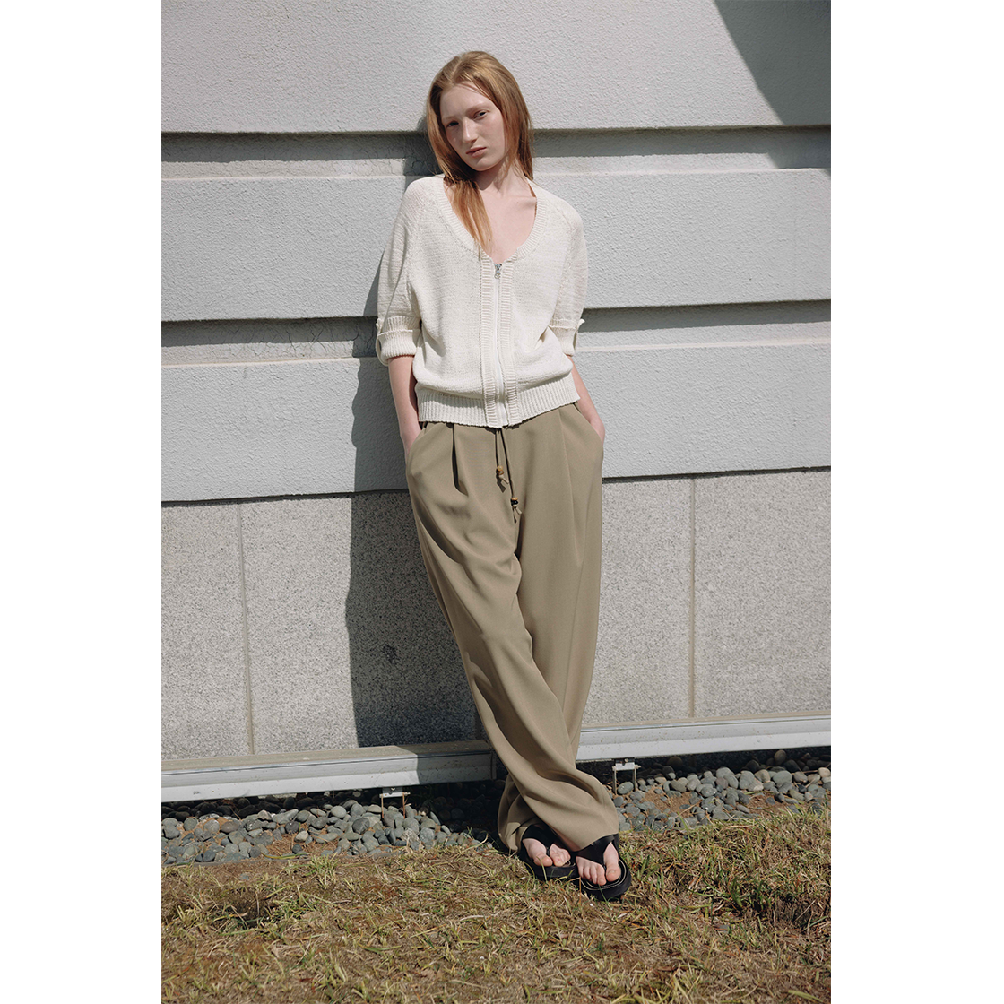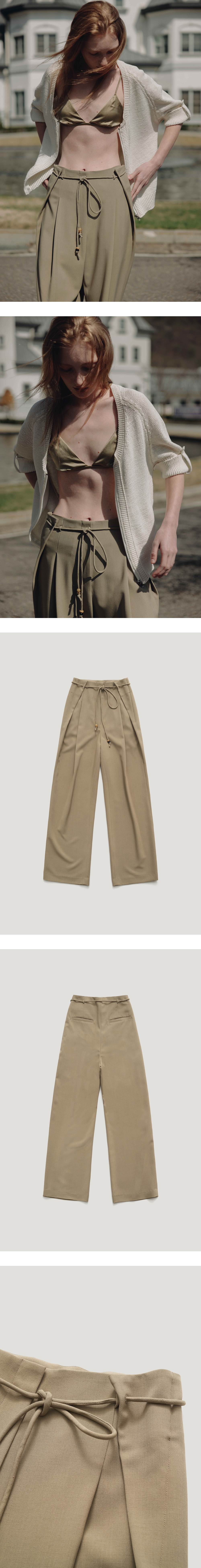 클래식한 무드의 와이드핏 슬렉스입니다.허리 절개선이 없는 디자인으로 허리라인을 안점감 있게 감싸주며,자연스럽게 떨어지는 내추럴한 와이드 핏 실루엣으로 멋을 더했습니다.입체감있는 스트링에 원석장식 디테일을 추가하여 완성도를 높였으며,사계절 착용이 가능한 감각적인 룩을 연출하 실 수 있는 팬츠입니다. - 천연원석 특성상 컬러와 무늬 패턴이 다를 수 있습니다. 이점은 불량사유가 아니므로 교환 및 반품사유에 해당되지 않습니다. TAMO wearing a size FREE. MODEL : HEIGHT 172 / BUST 39 / WAIST 30 / HIPS 44