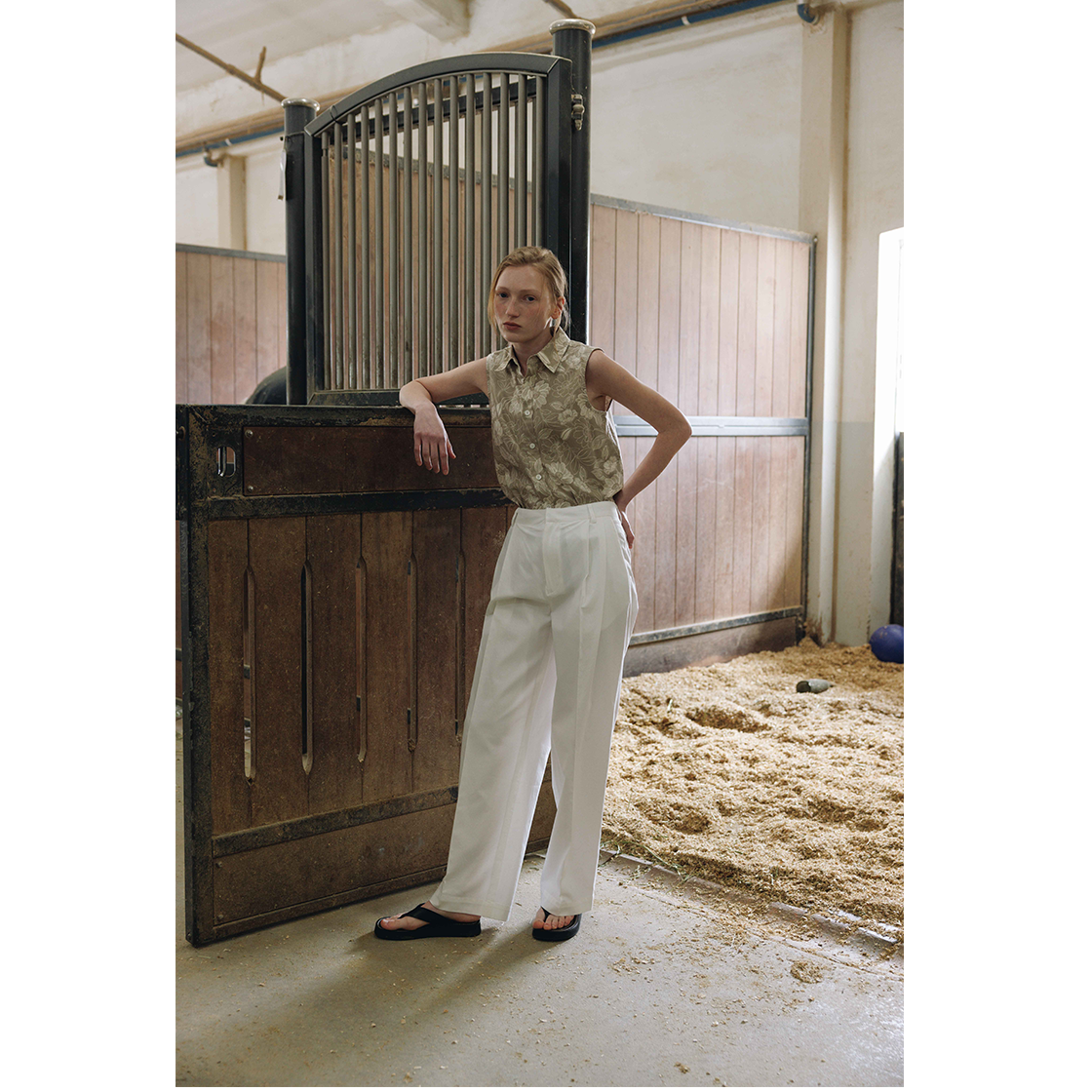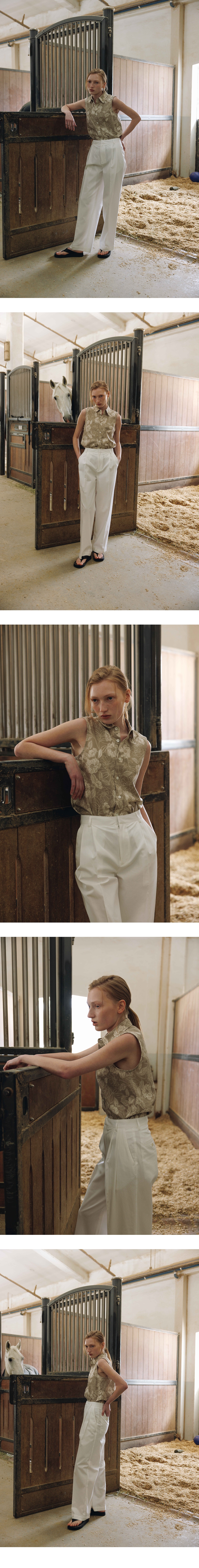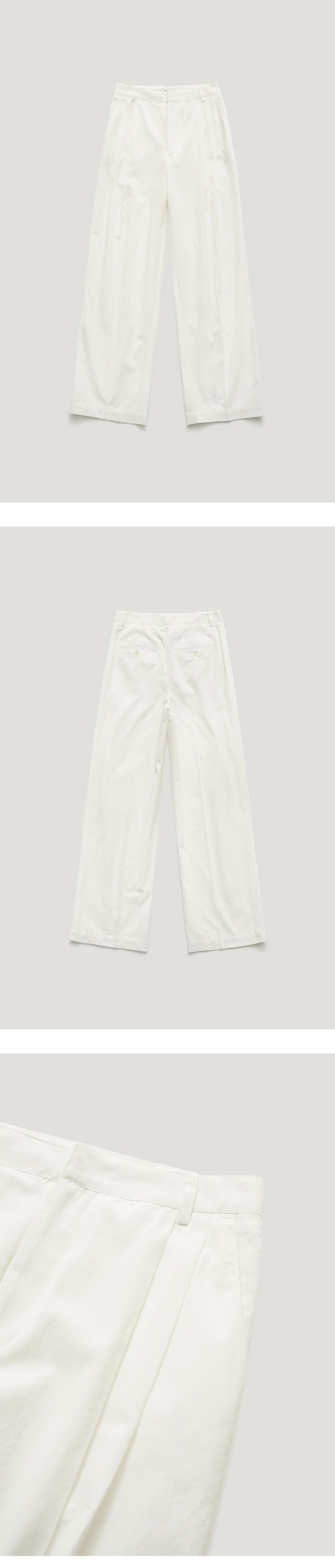 캐주얼과 클래식한 무드가 동시에 느껴지는 여유로운 실루엣의 코튼팬츠 입니다. 편안한면서도 자연스럽게 내려오는 라인으로 다양한 체형에 어울 리는 아이템입니다. 코튼 100%소재로 빈티지한 느낌의 자연스러운 구김 과 워싱감이 특징이며 전면부에 깔끔하게 잡힌 두개의 핀턱라인이 있습니 다. 뒷포켓에는 로고 각인된 자개단추가 달려있으며 지퍼 플라이 여밈구조 로 마무리하였습니다. TAMO wearing a size FREE. MODEL : HEIGHT 172 / BUST 39 / WAIST 30 / HIPS 44