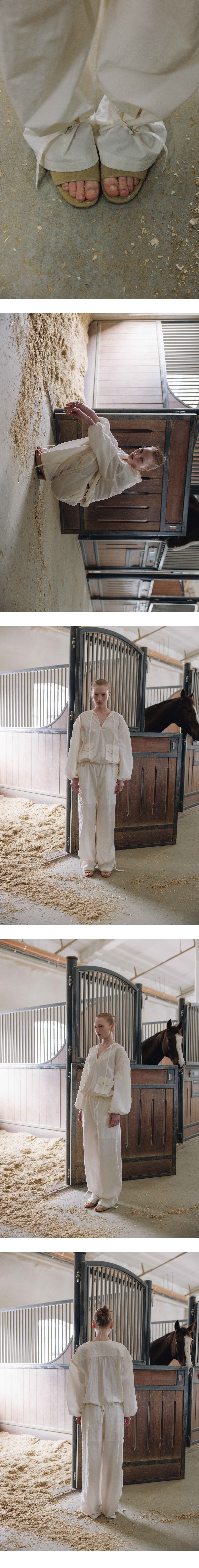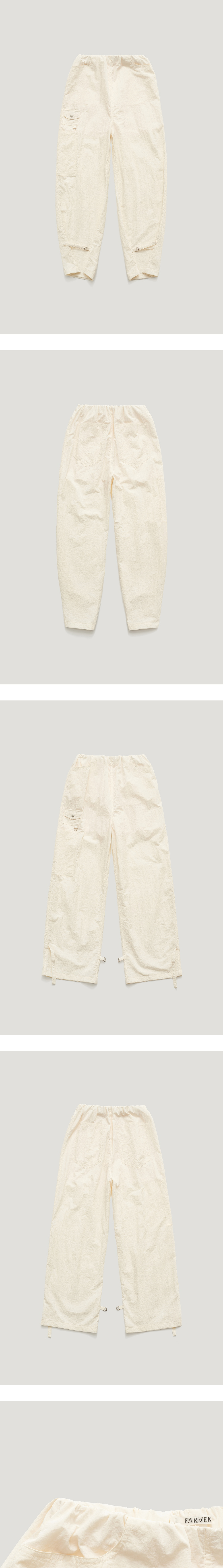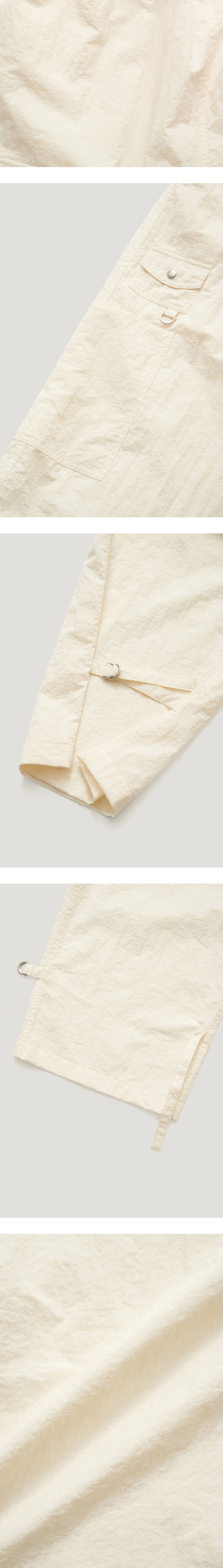 스포티한 무드를 가진 나일론 팬츠입니다.다양한 크기와 디자인을 가진 4 개의 포켓이 있어 실용도가 좋으며,허리는 밴딩으로 되어있어 사이즈에 구 애받지 않고 편안하게 착용이 가능합니다.밑단에는 스트랩으로 포인트를 주어 와이드핏과 조거핏으로 사이즈를 조절하여 2way 스타일을 연출하 실 수 있습니다. TAMO wearing a size FREE. MODEL : HEIGHT 172 / BUST 39 / WAIST 30 / HIPS 44