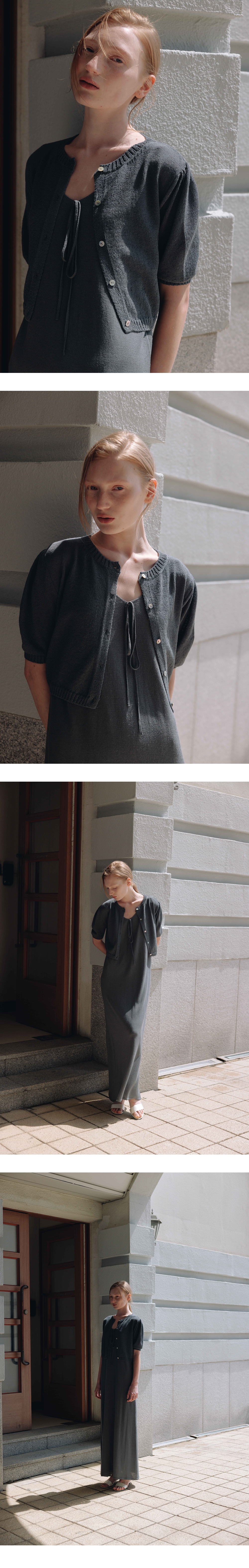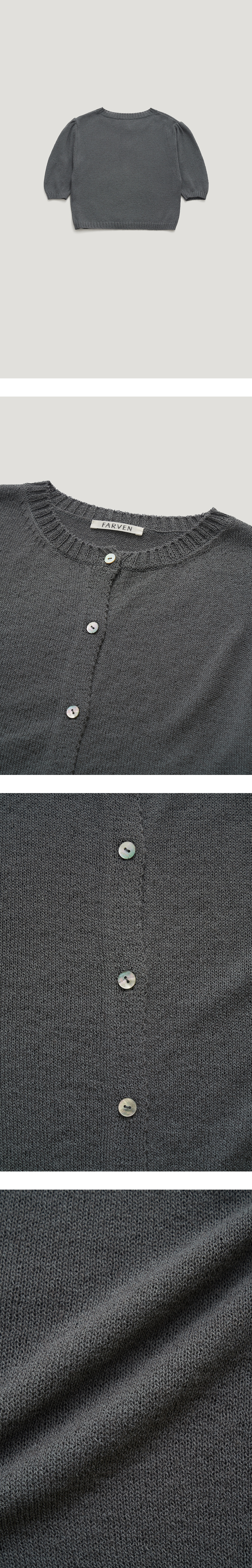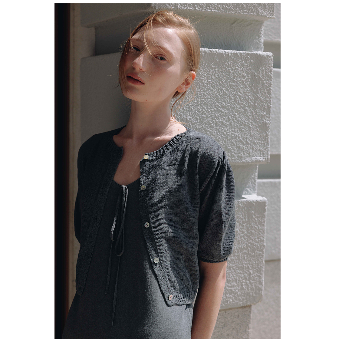 베이직한 디자인의 크롭 린넨 니트 가디건 입니다.파르벵 로고가 새겨진 자 개단추 디테일을 주었고,소매라인 볼륨감을 자연스럽게 주어 여성스러운 감 도를 더해주었습니다.가볍고 통기성이 좋은 린넨 혼방 원사로 짜여져 썸머 아이템으로 활용도가 매우 좋으며,다양한 이너 또는 단독착용으로 다양한 스 타일 연출이 가능한 아이템입니다. TAMO wearing a size FREE. MODEL : HEIGHT 172 / BUST 39 / WAIST 30 / HIPS 44