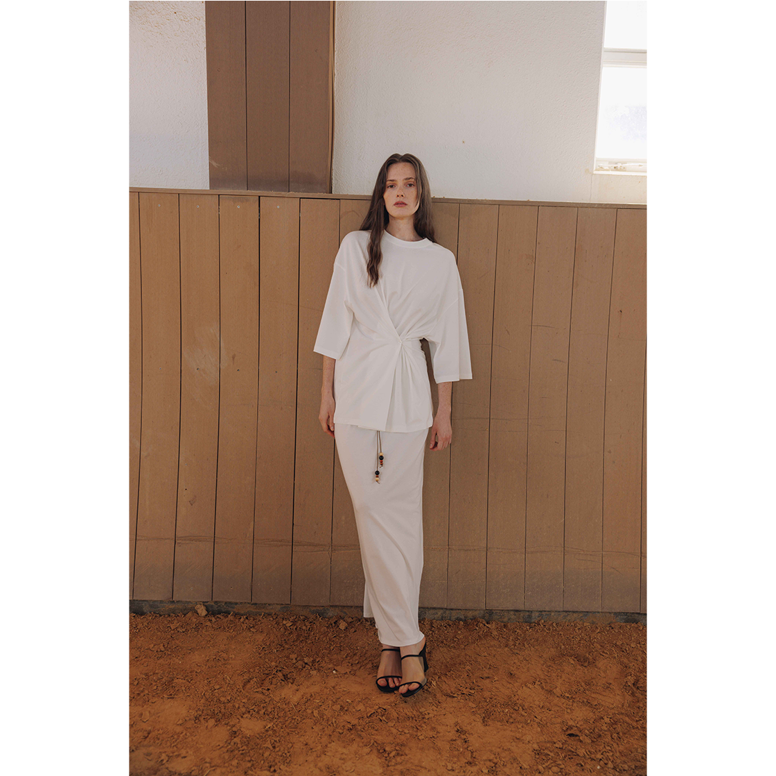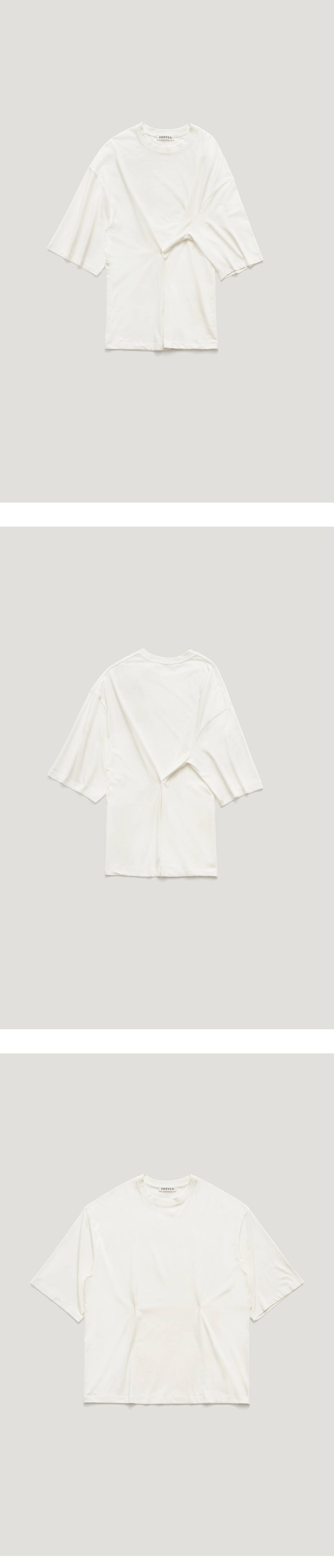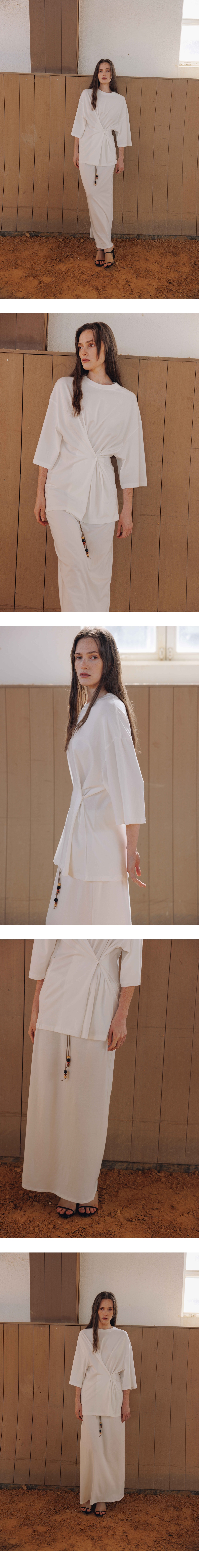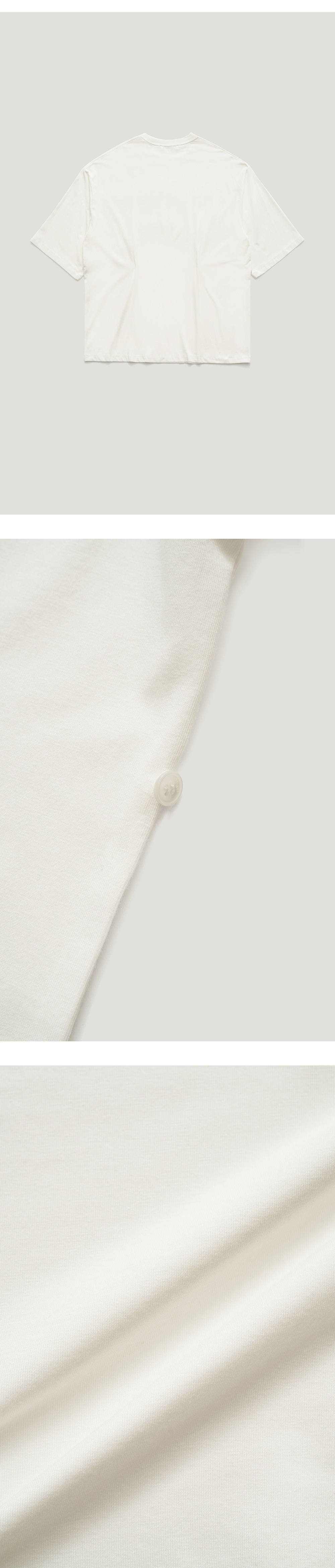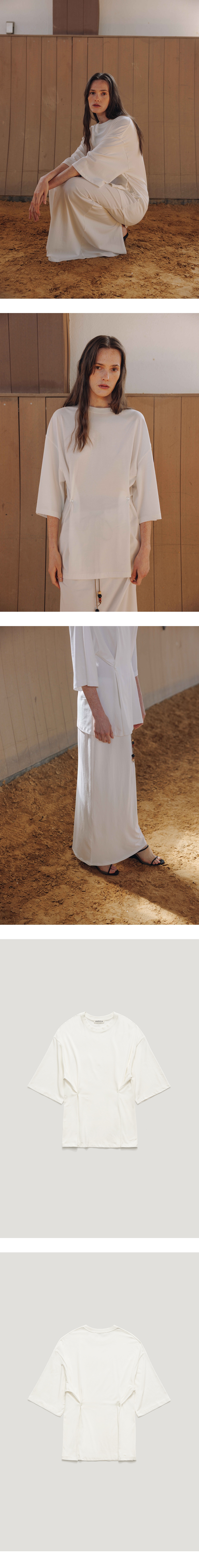 베이직한 디자인에 버튼디테일이 들어가있는 4-way 반팔티셔츠입니다. 전체적으로 루즈한 실루엣에 얇은 소재감이 내추럴한 무드를 강조해주며 코튼,모달 혼방소재로 탄탄하고 견고하며 소프트한 터치감이 특징인 제품 입니다. 양쪽 허리라인에 파르벵 로고가 각인된 버튼이 달려있으며 전/후면에 두개의 버튼구멍이 있어 무드에 맞게 다양한 스타일링이 가능하여 활용도 높은 아이템입니다. 버튼을 다 풀어입거나 양쪽을 모두 클로징하는형태, 전면부에서 사선으로 클로징, 후면부에서 사선으로 클로징하는 방식으로 MEMO STRING MODAL SKIRT와 셋업으로 착용이 가능합니다. VLADA wearing a size FREE. MODEL : HEIGHT 173 / BUST 39.5 / WAIST 30.5 / HIPS 44.5
