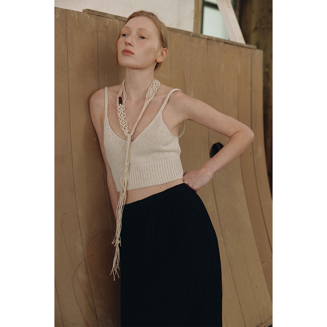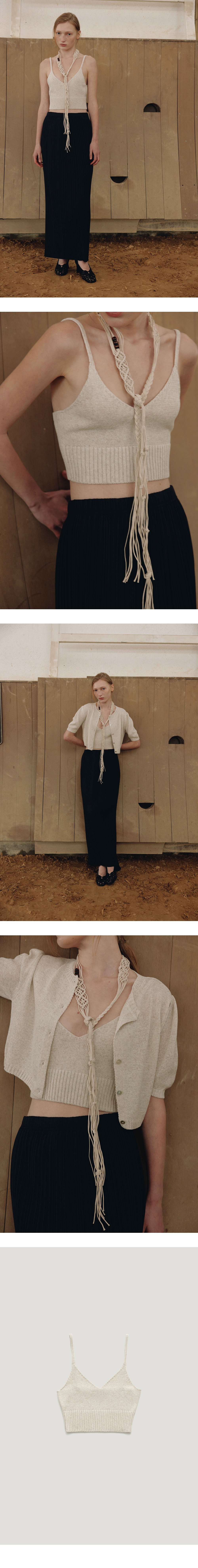 가볍고 통기성이 좋은 린넨 혼방 원사로 짜여진 크롭 린넨 뷔스티에입니다. 부담스럽지 않은 파임과 크롭 기장감으로 다양한이너 또는 단품으로 활용하기 좋은 아이템입니다. TAMO wearing a size FREE. MODEL : HEIGHT 172 / BUST 39 / WAIST 30 / HIPS 44