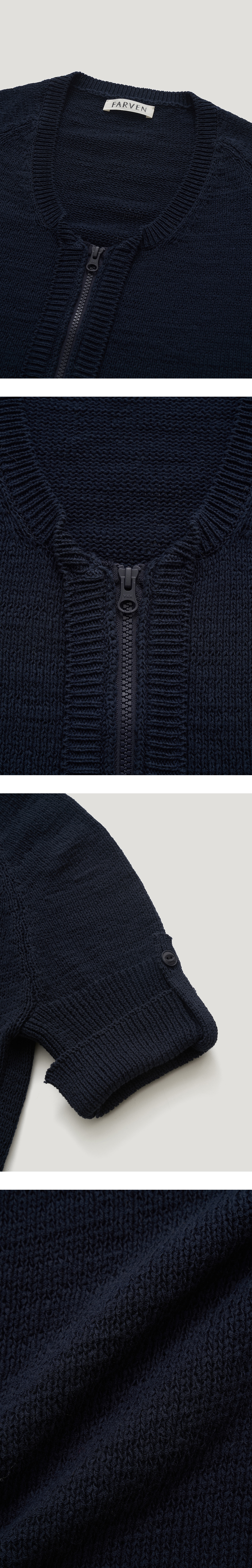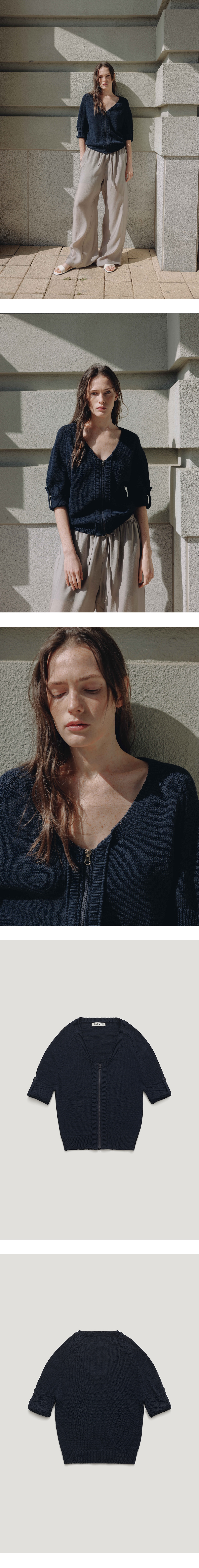 코튼 원사로 탄탄하게 짜여진 썸머 집업 니트가디건입니다.전체적으로 루 즈한 실루엣으로 다양한이너를 착용해 여름철까지 아우터로 활용이 가능하 며,단독착용으로도 가능한 아이템입니다. 둥근소매라인과 소매롤업 고정이 가능하게끔 포인트를 주어 디자인 완성도를 높였습니다. VLADA wearing a size FREE. MODEL : HEIGHT 173 / BUST 39.5 / WAIST 30.5 / HIPS 44.5