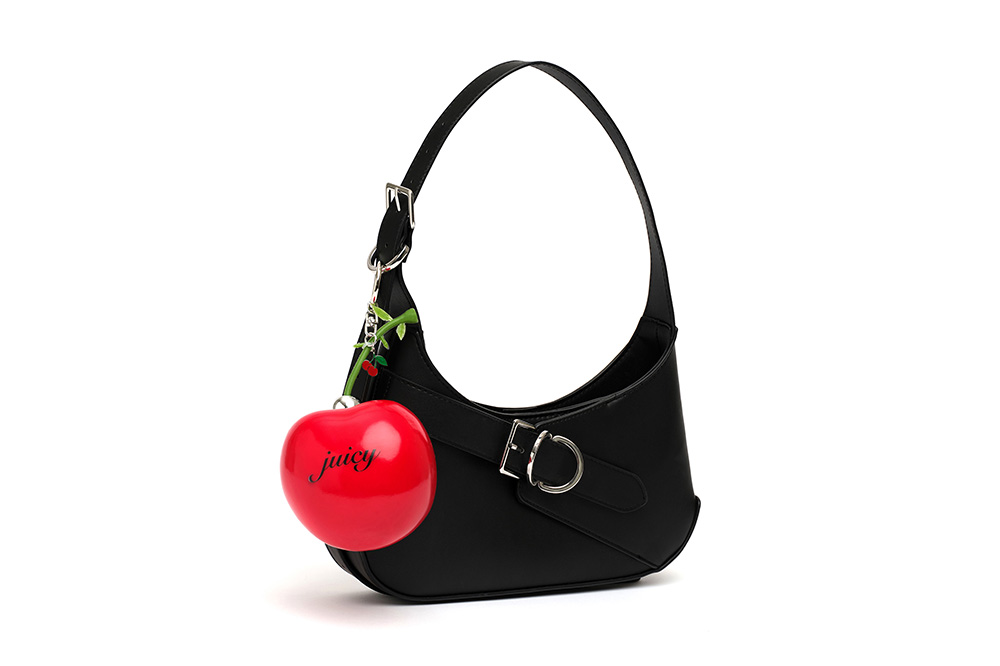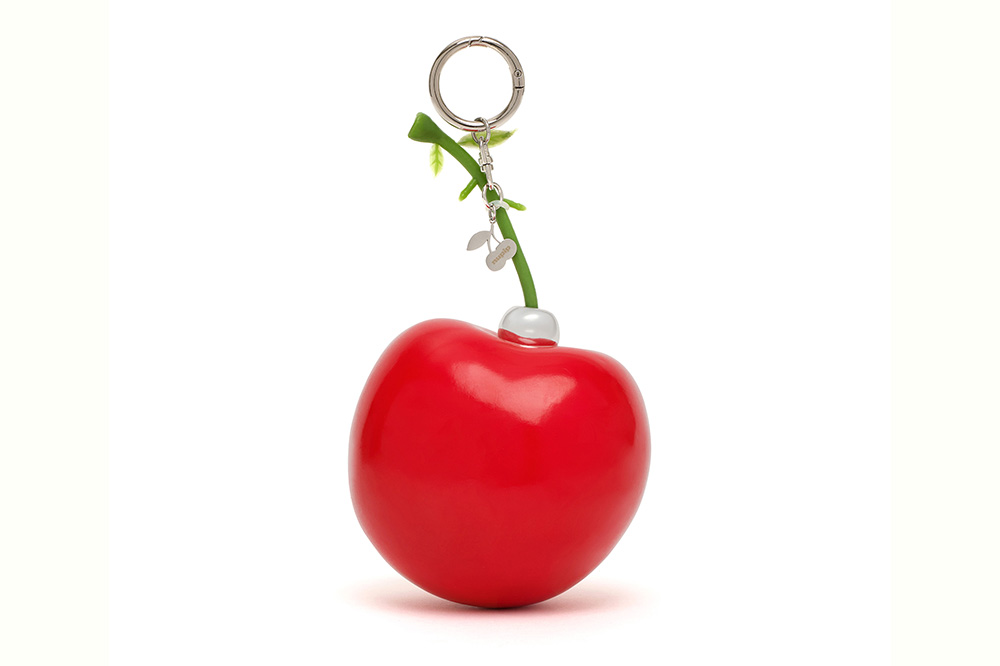 체리 모양의 키링입니다. 큼직한 사이즈로 룩에 확실한 포인트가 되어주며, 작은 실버 체리 참이 귀여운 디테일을 더해줍니다.