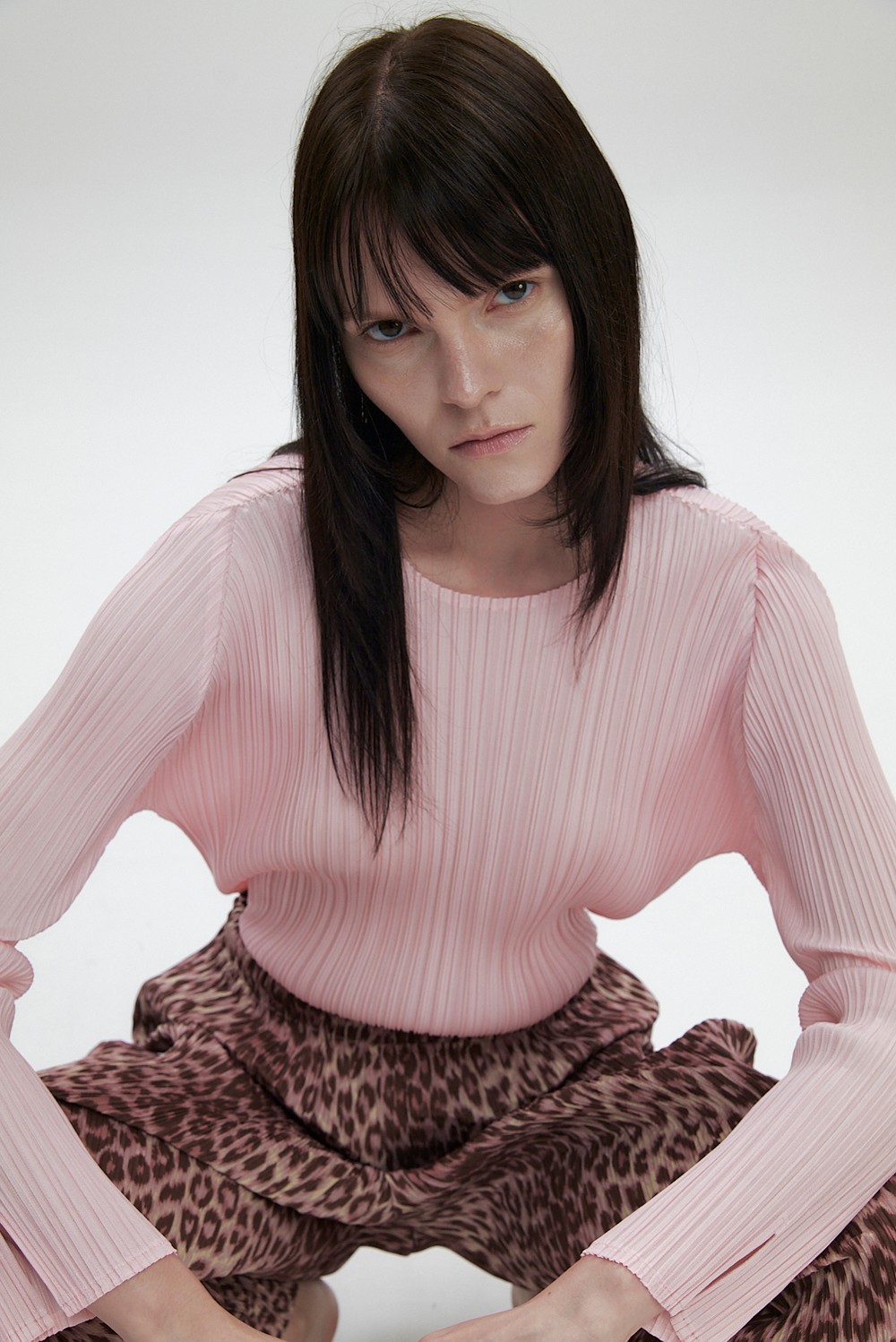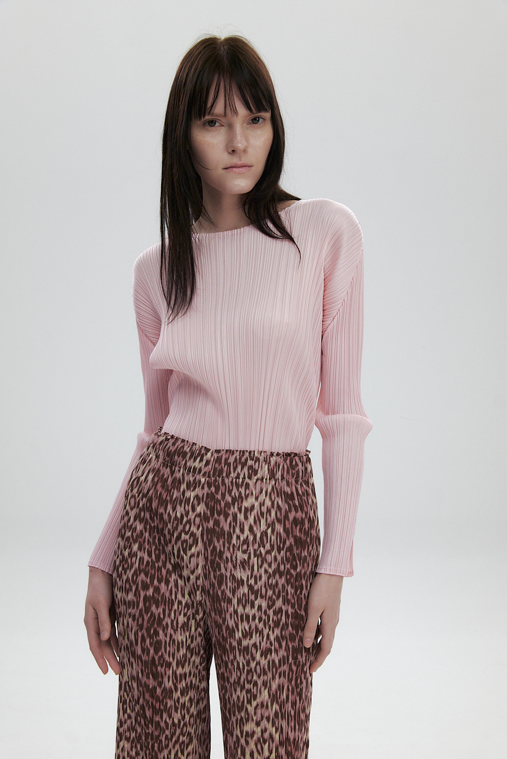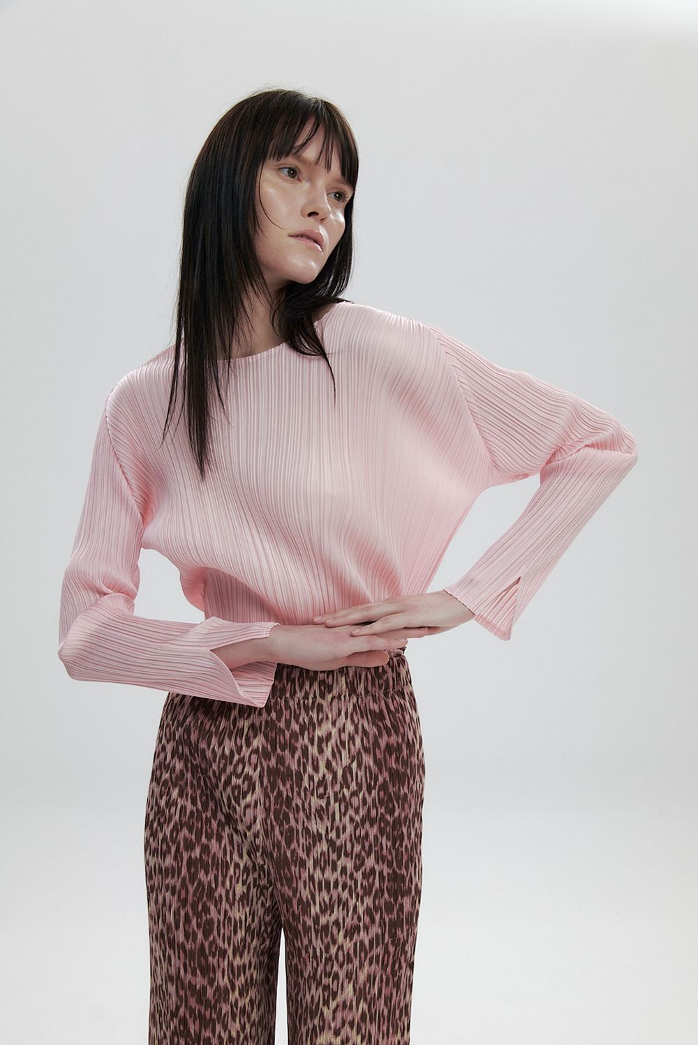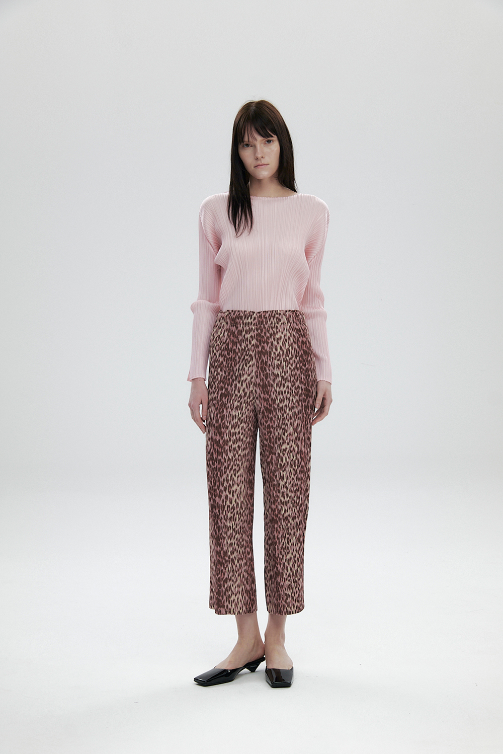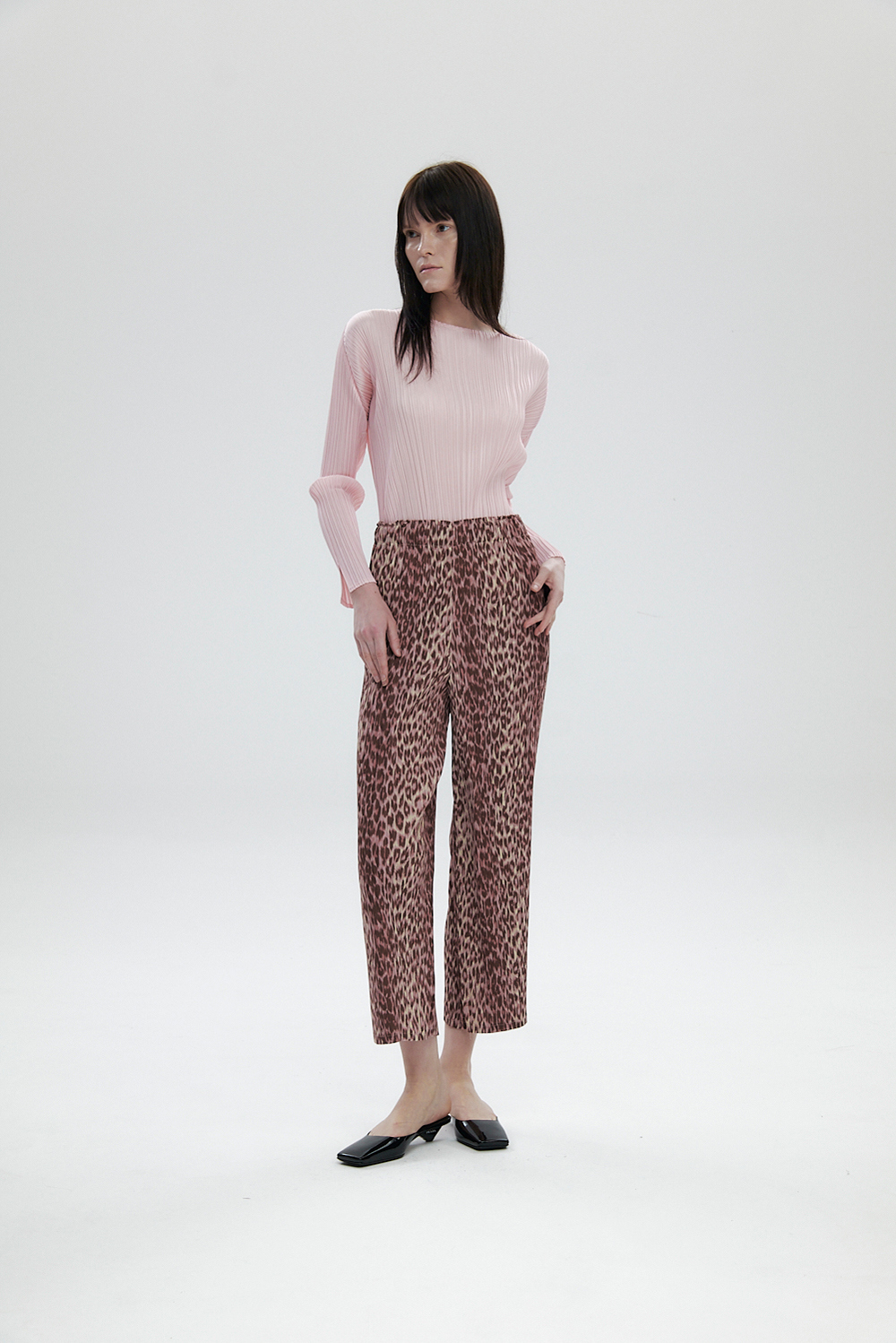 Monplisse Women Leopard Wide Fit Pleats Long Pants Pink