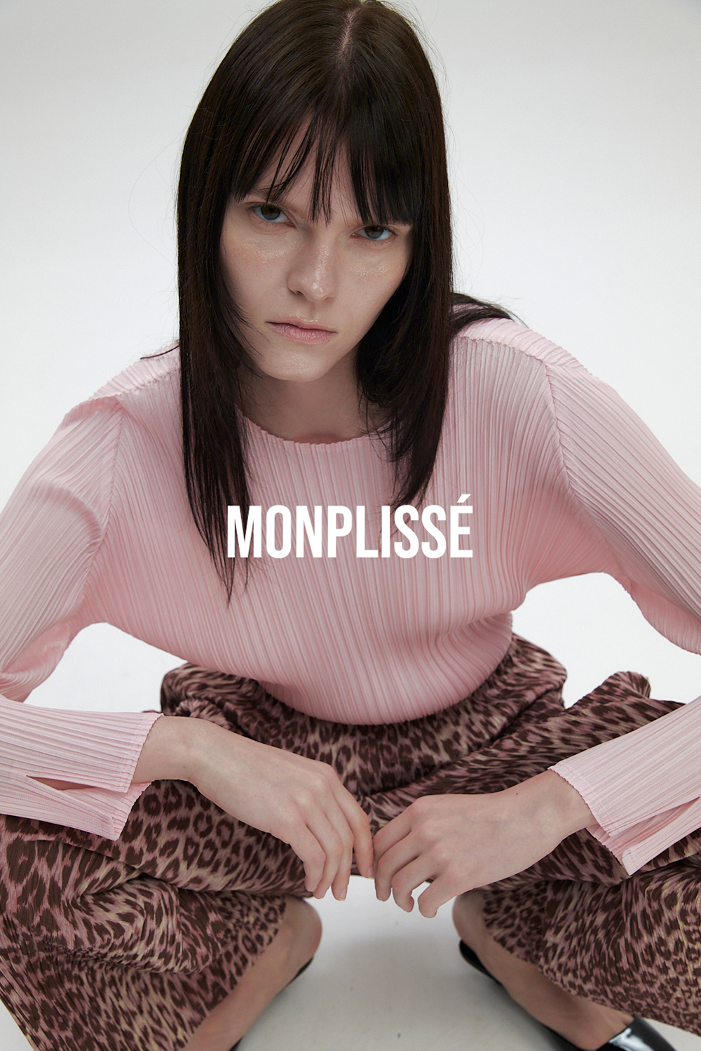 몽플리쎄 여성 레오파드 와이드핏 플리츠 롱 팬츠 핑크