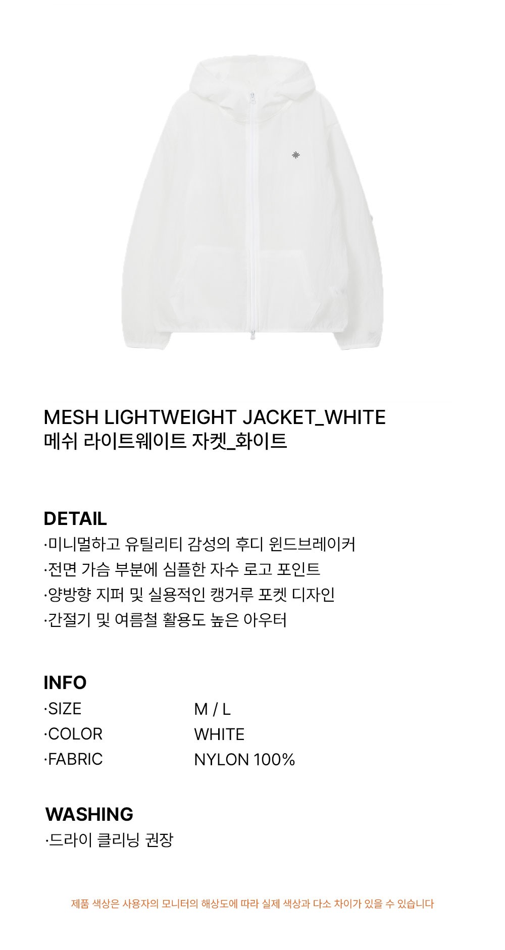 슬로우 레코드 하우스 메쉬 라이트 웨이트 자켓 화이트