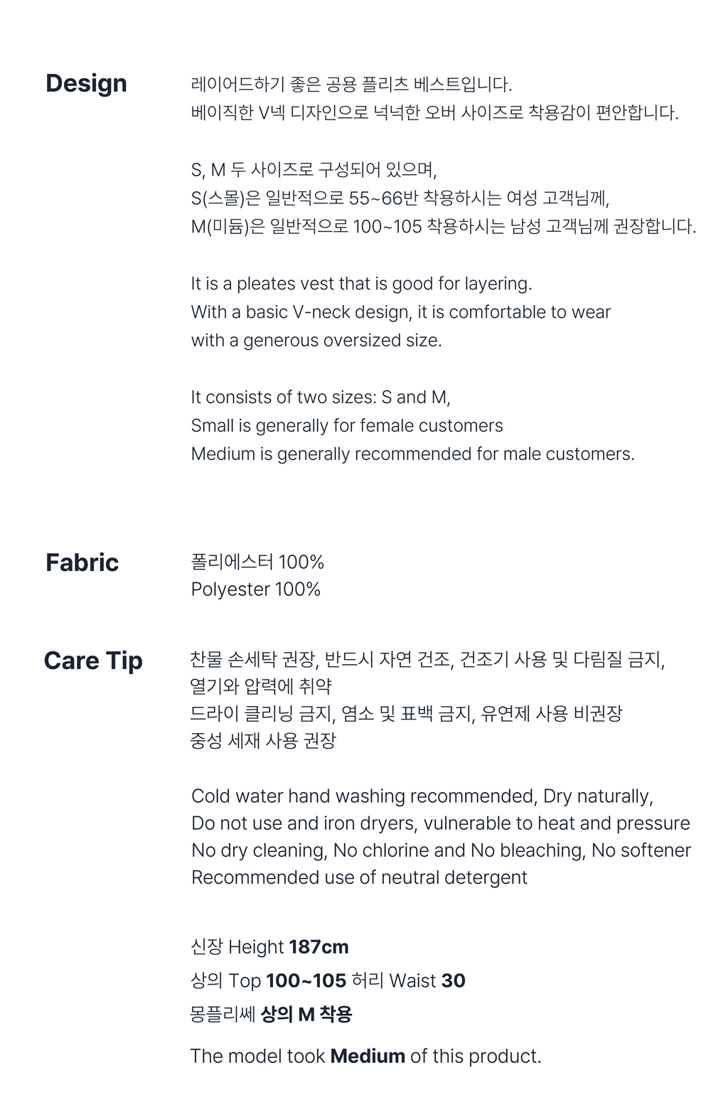 몽플리쎄 공용 V넥 기본 플리츠 베스트 네이비