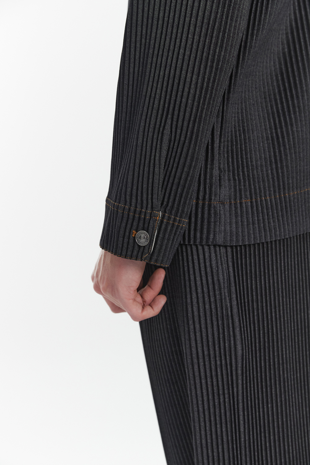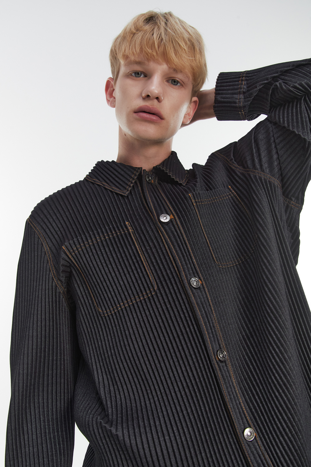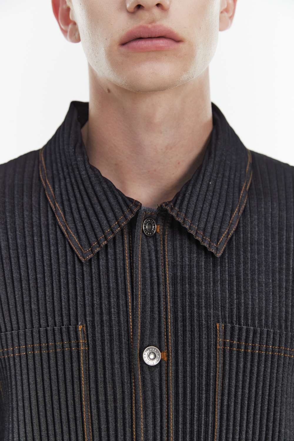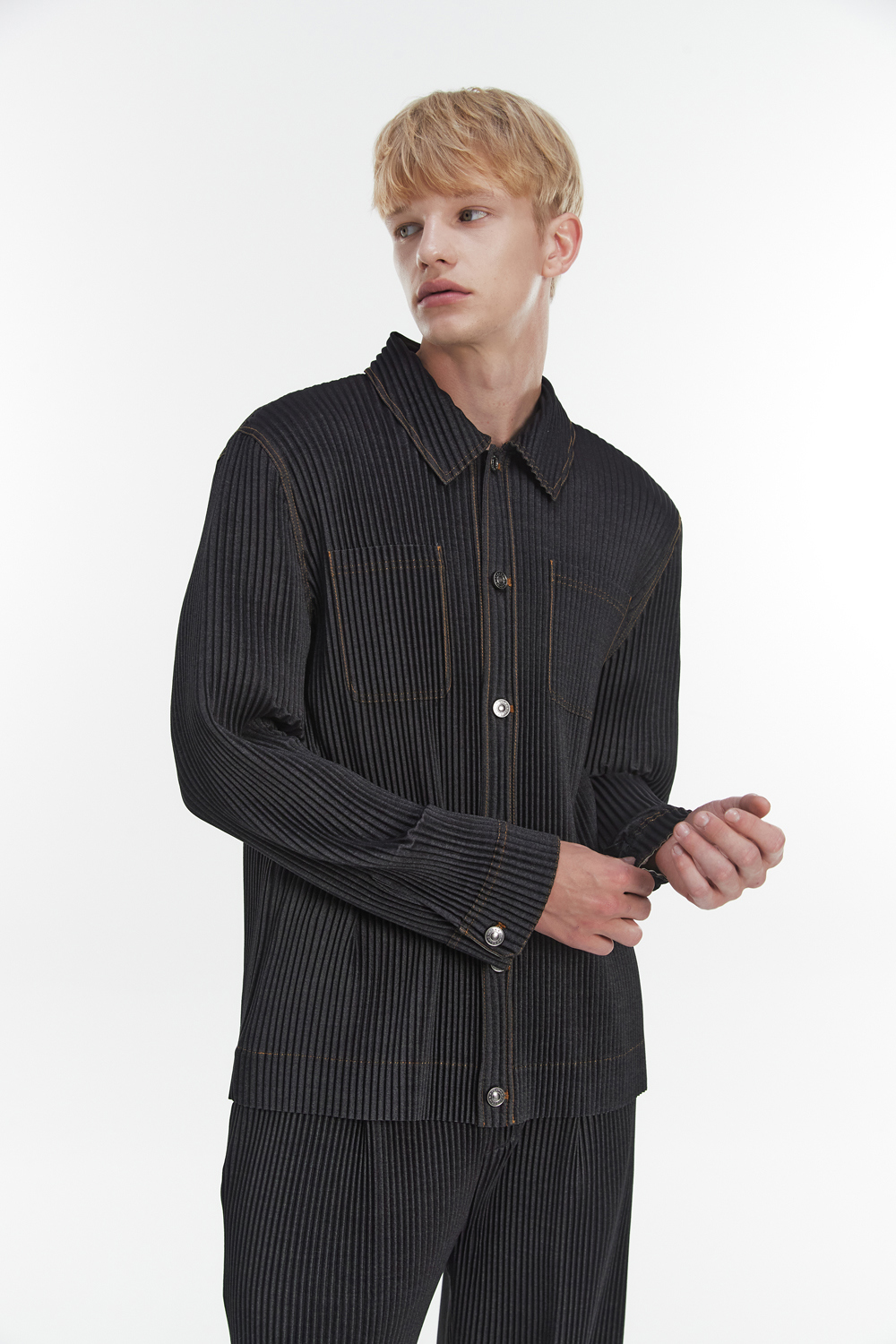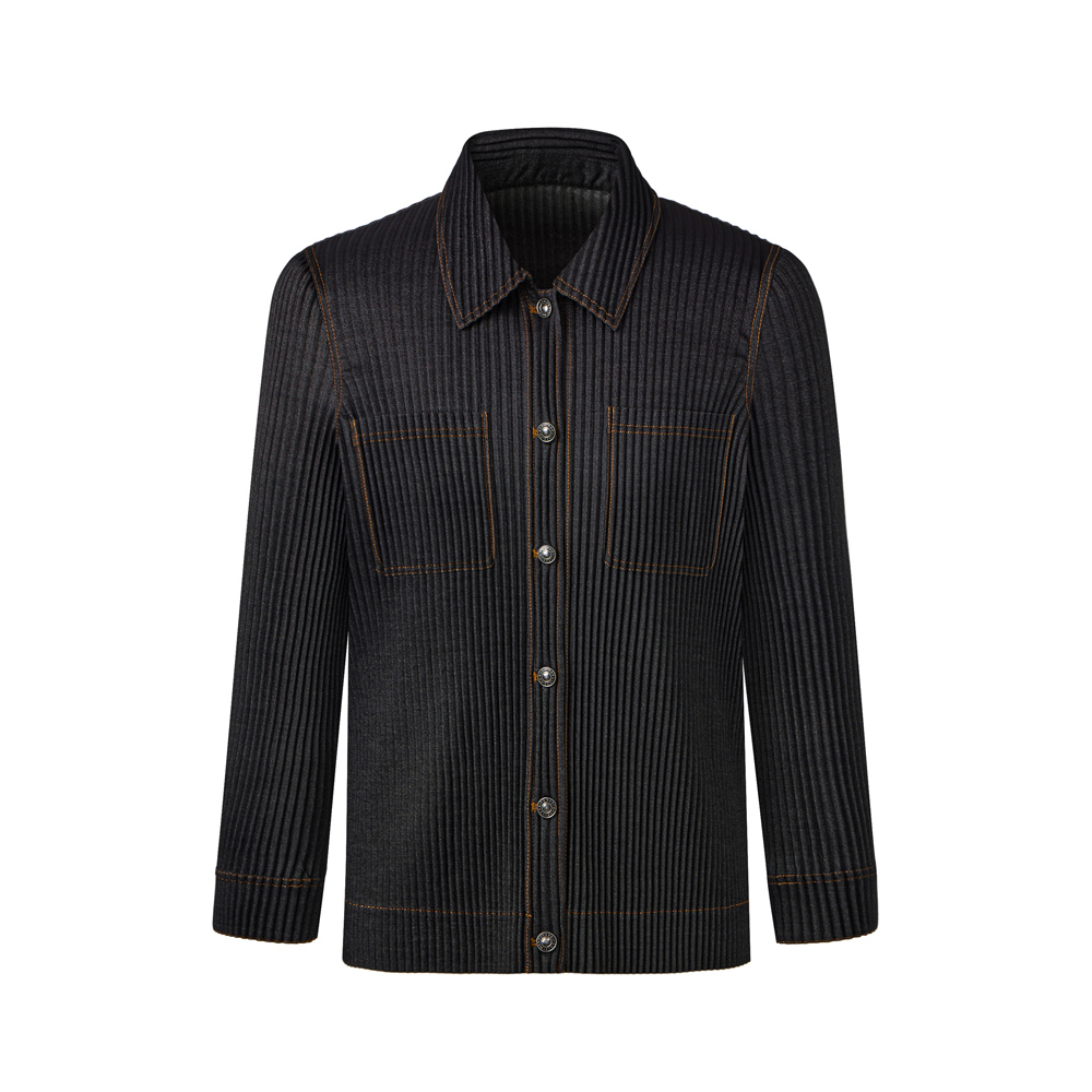 Monplisse Unisex Denim Pleats Roll Up Cuffs Jacket Black