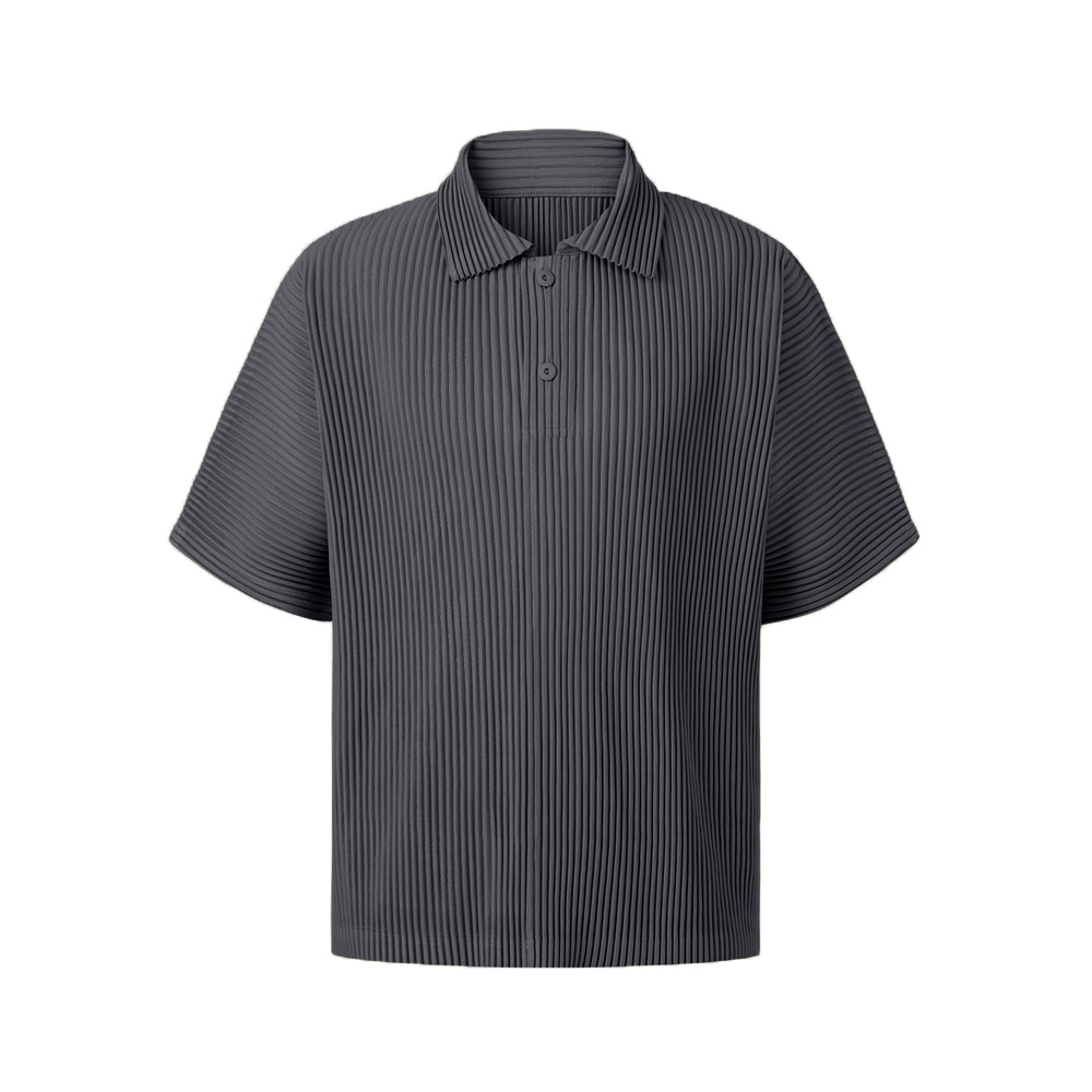Monplisse Unisex Collar Short-Sleeve Pleats T-Shirts Grey