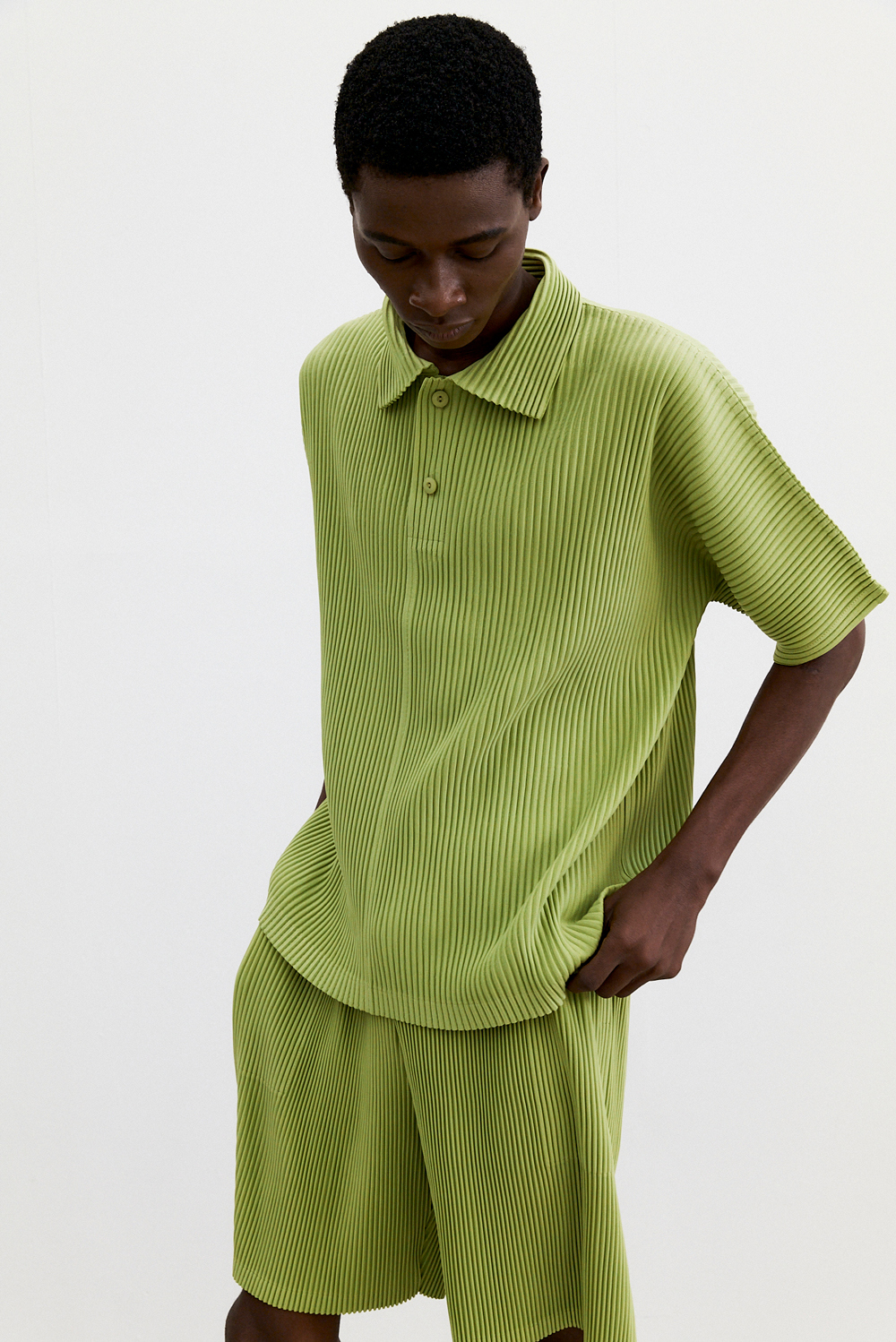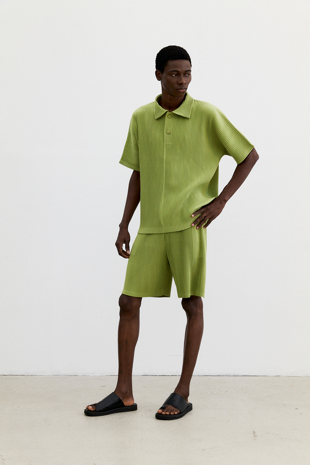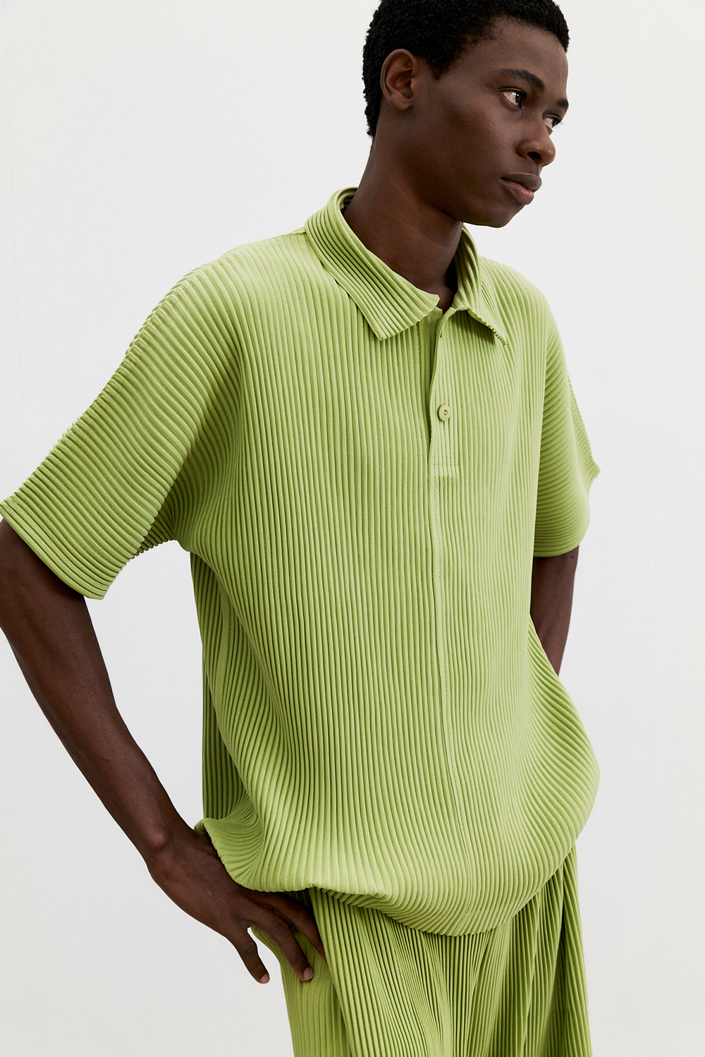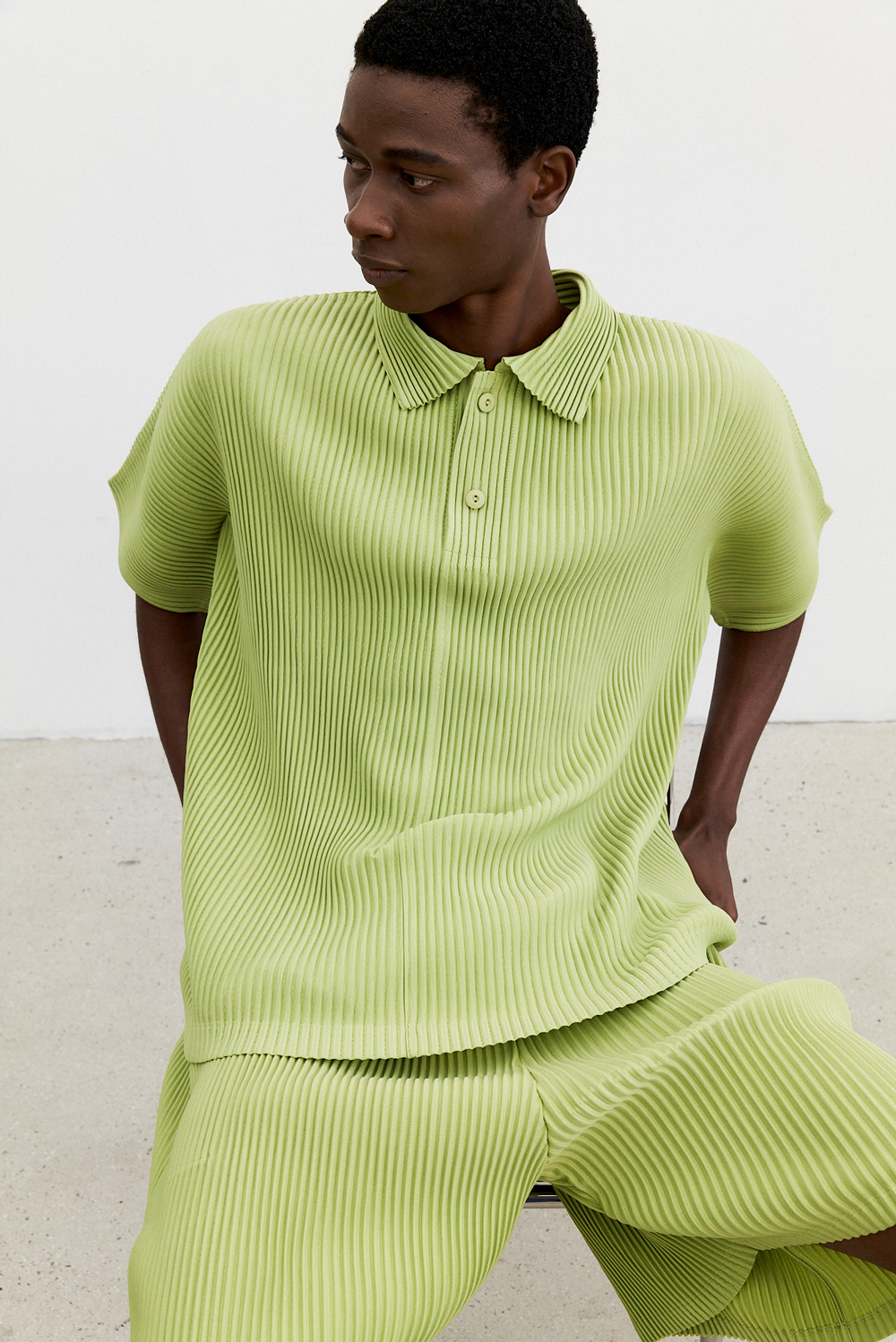 몽플리쎄 공용 카라넥 반소매 플리쎄 티셔츠 라임