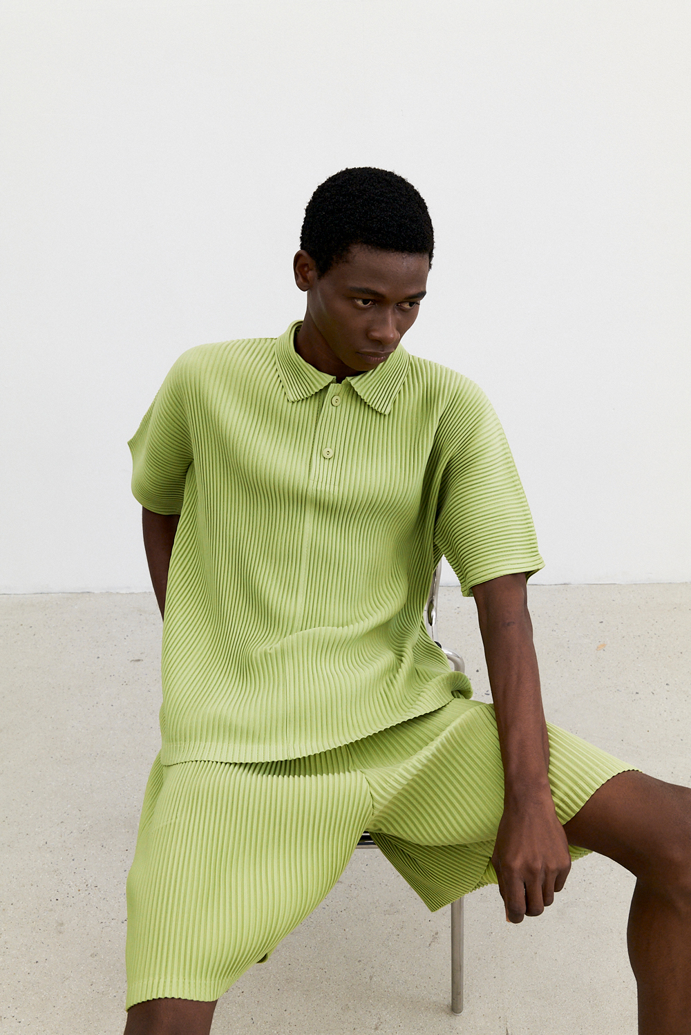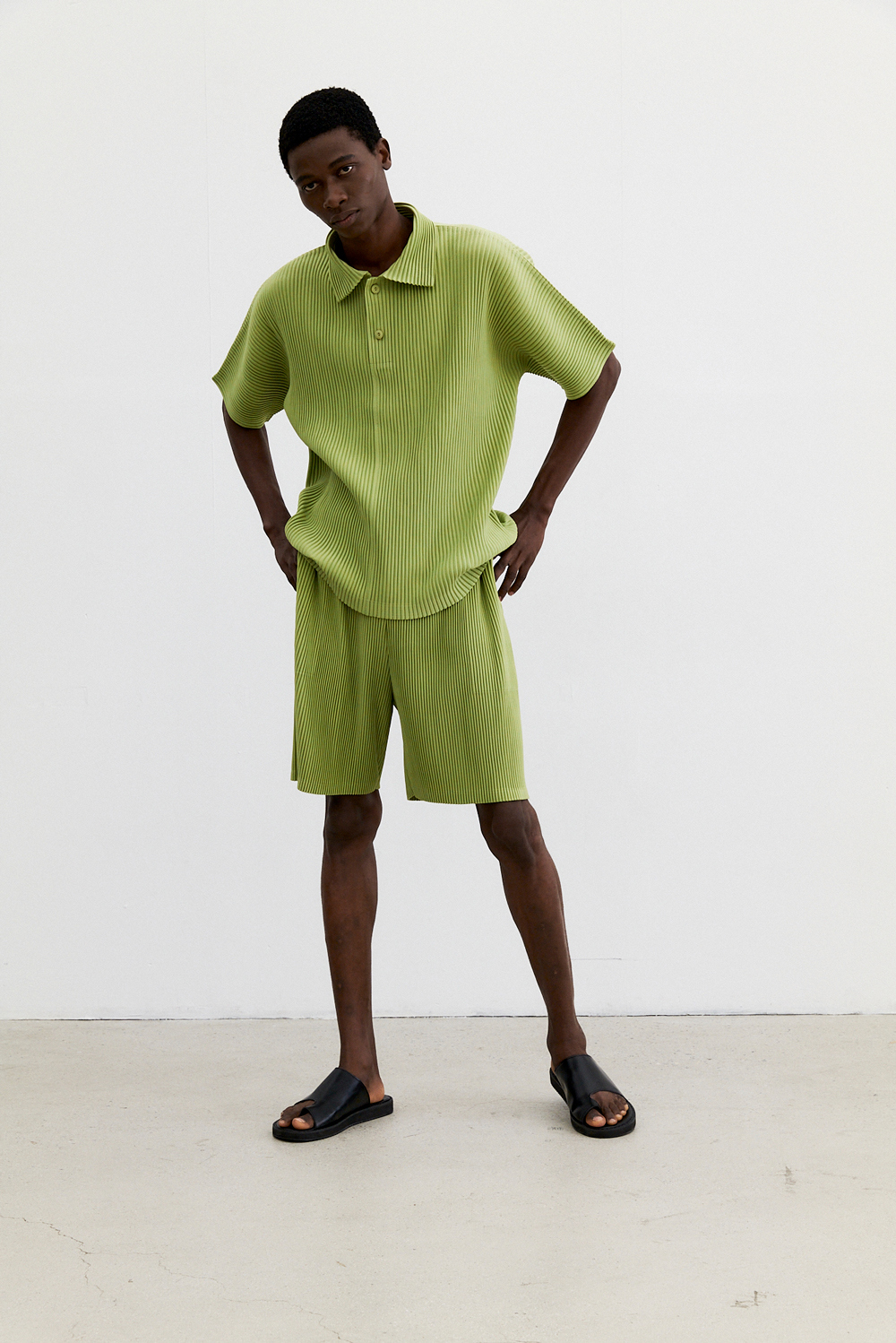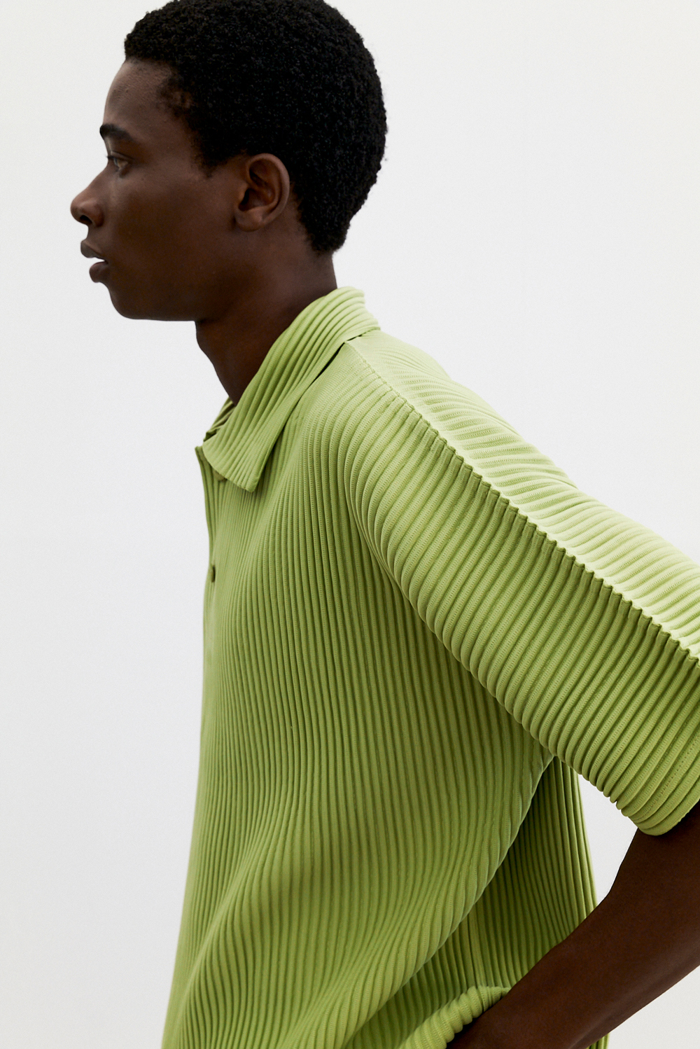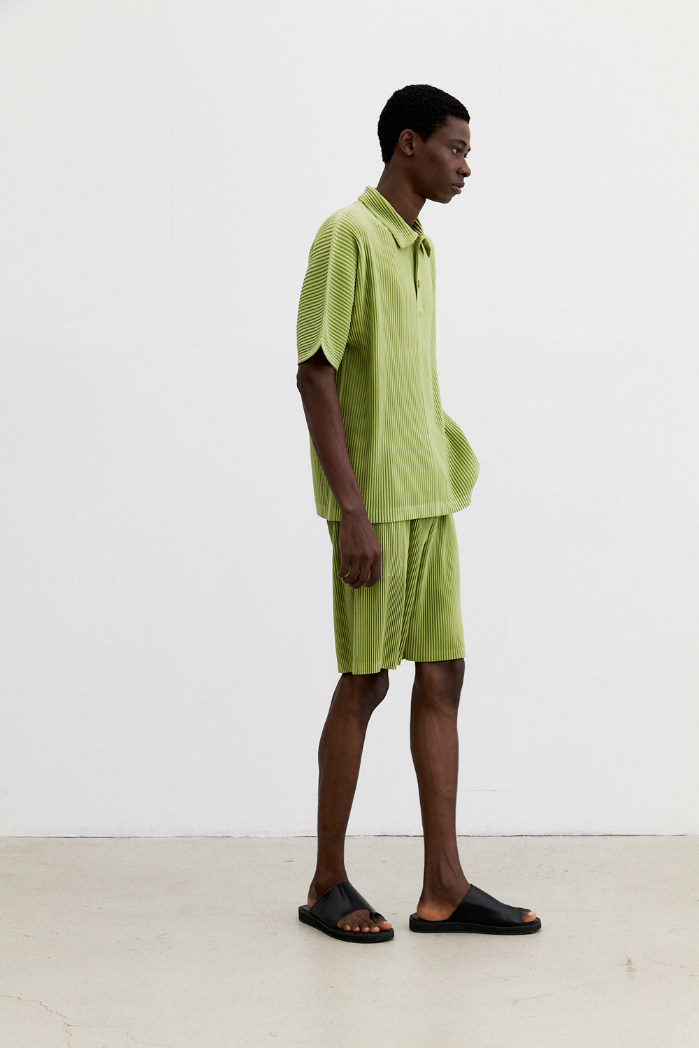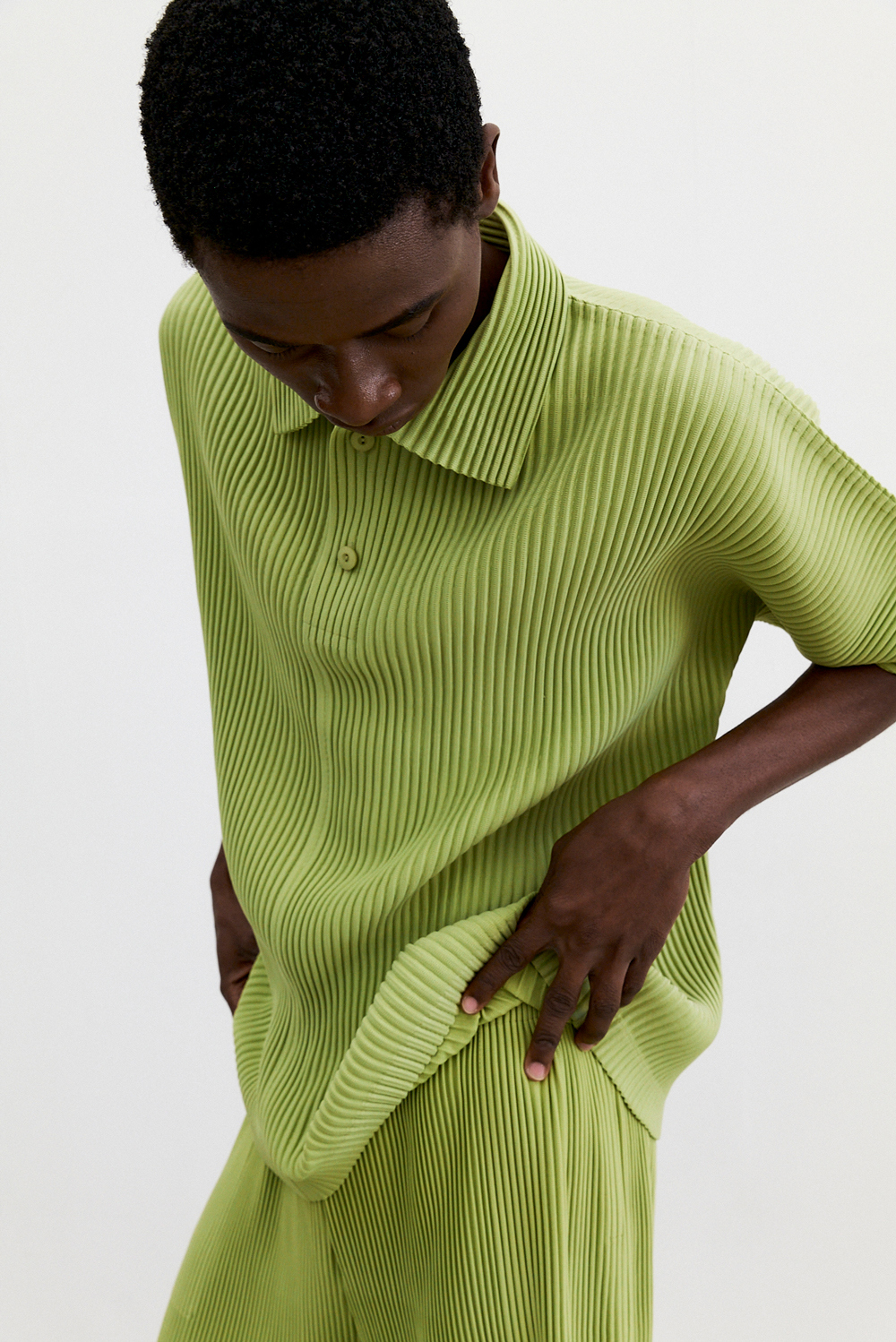 몽플리쎄 공용 카라넥 반소매 플리쎄 티셔츠 라임