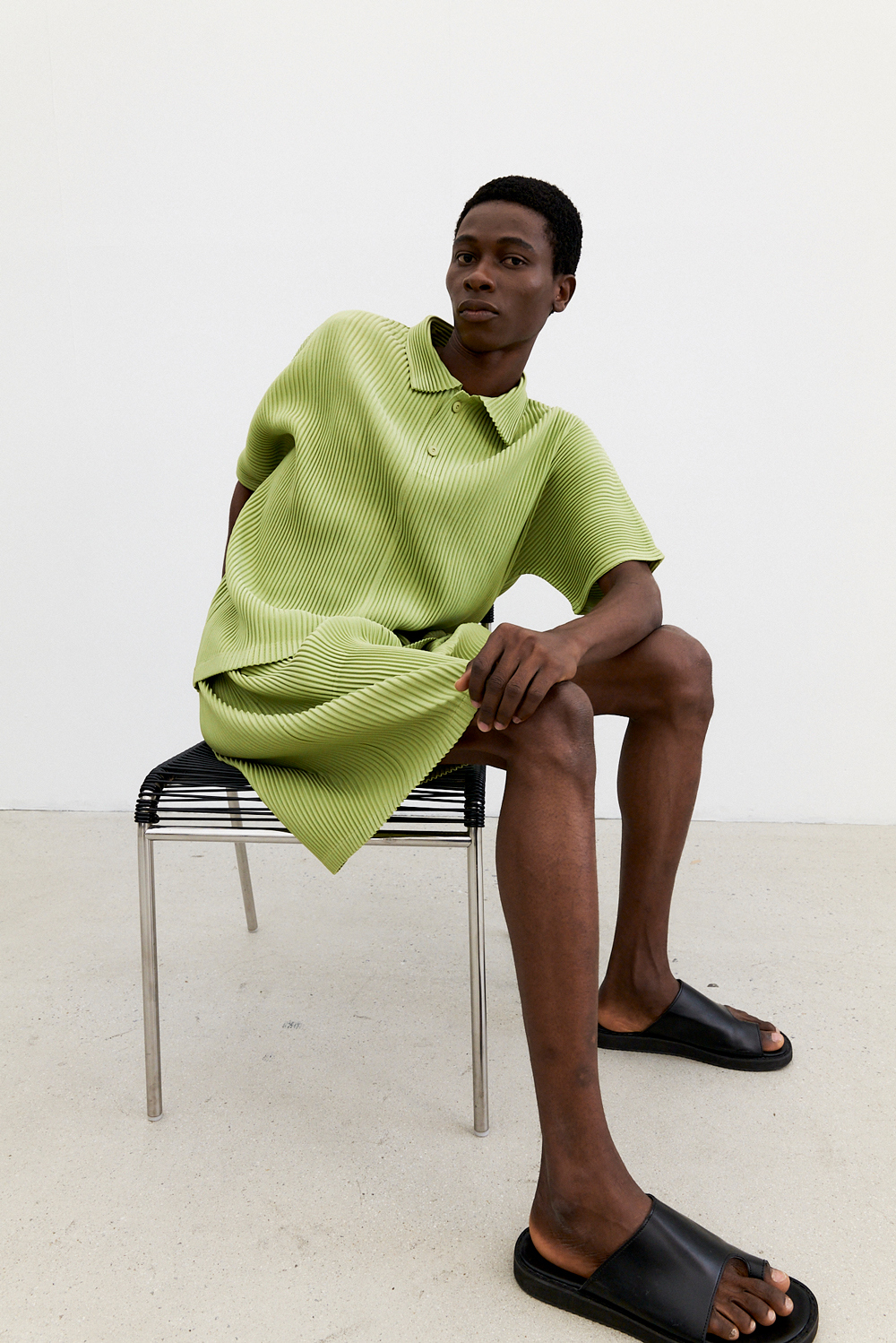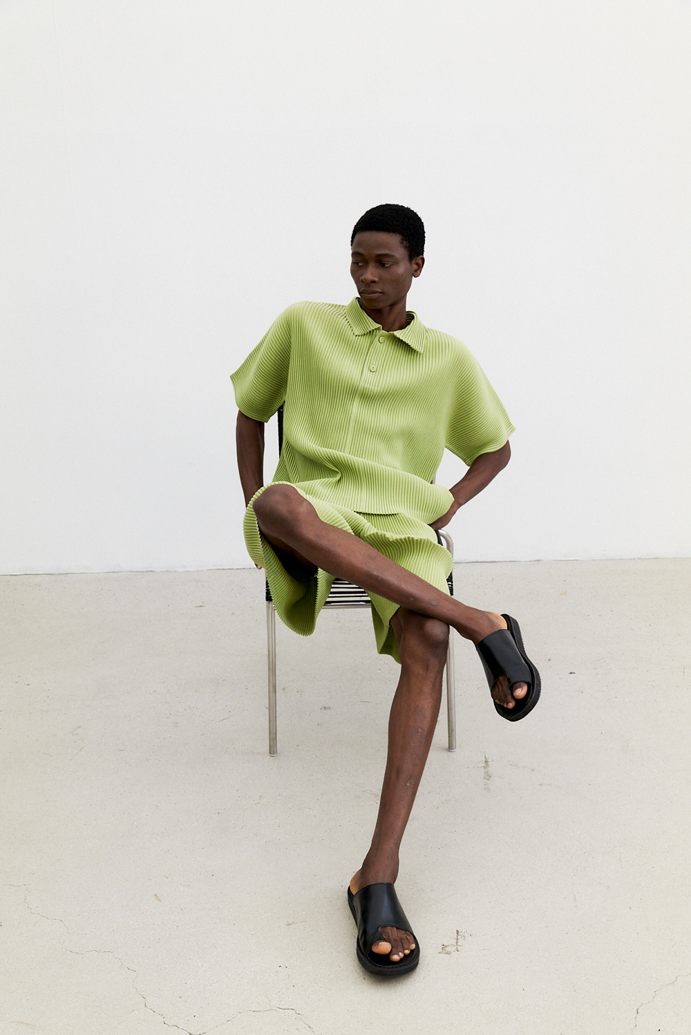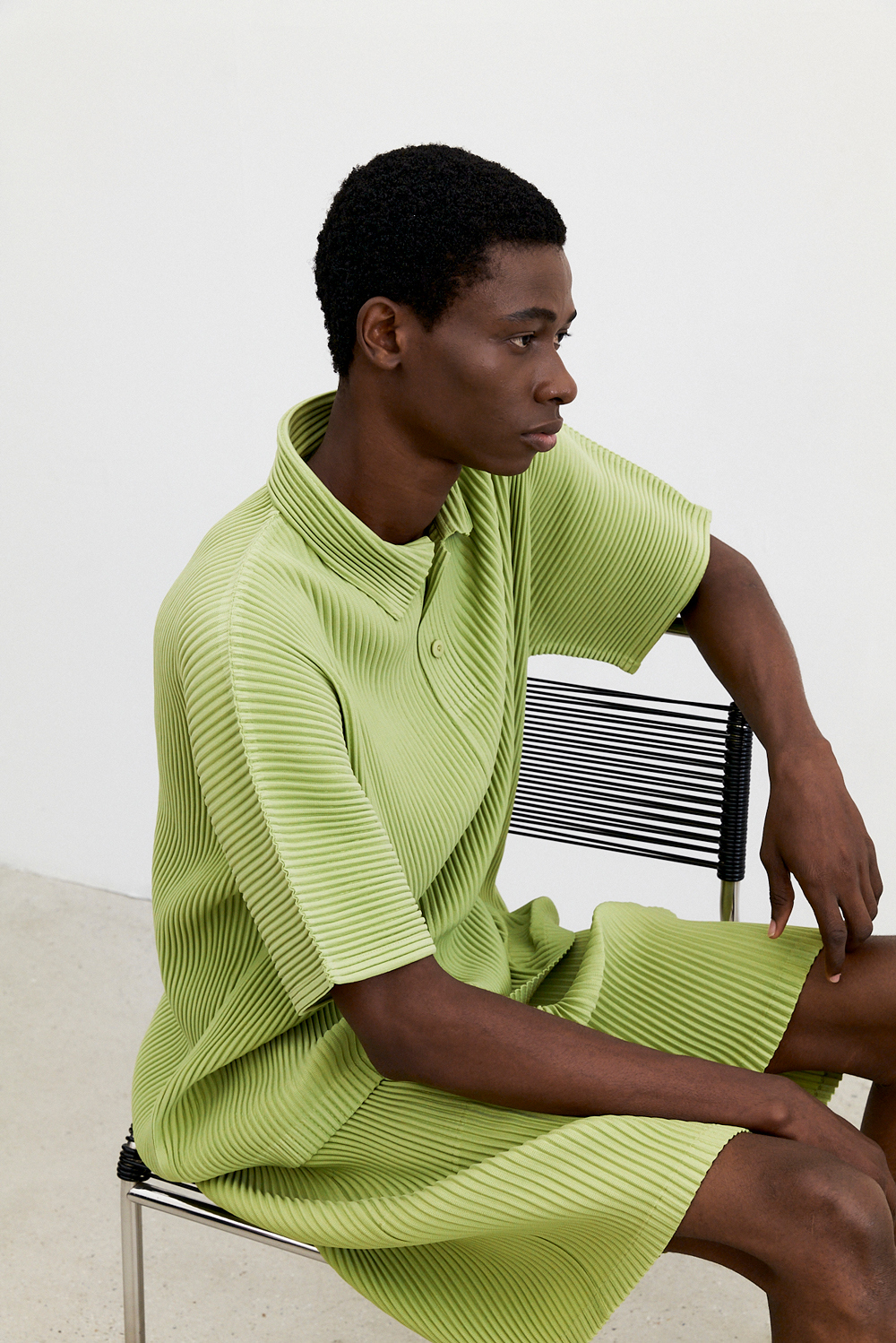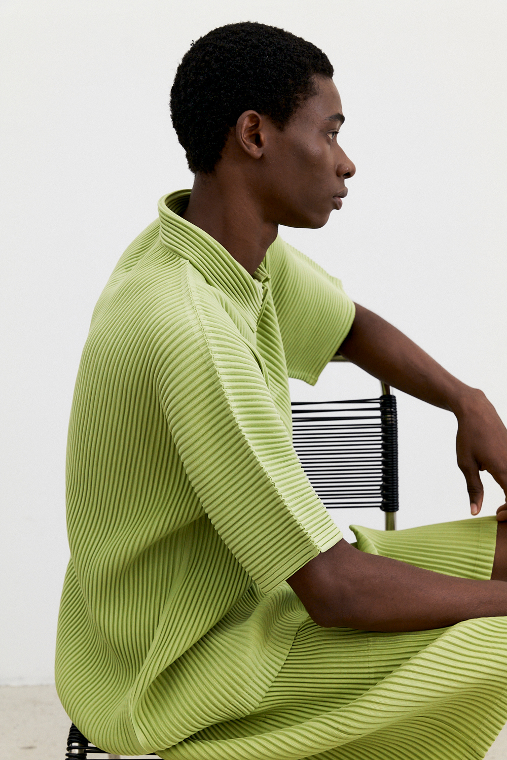 몽플리쎄 공용 카라넥 반소매 플리쎄 티셔츠 라임