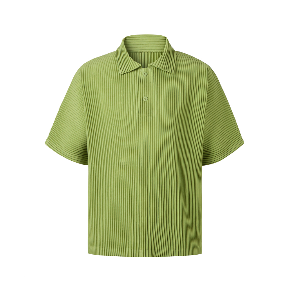 Monplisse Unisex Collar Short-Sleeve Pleats T-Shirts Lime
