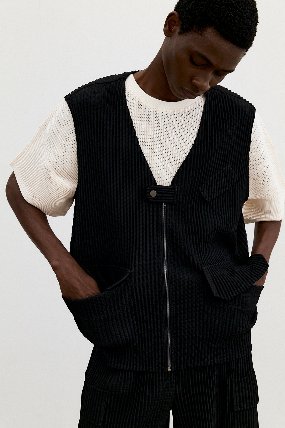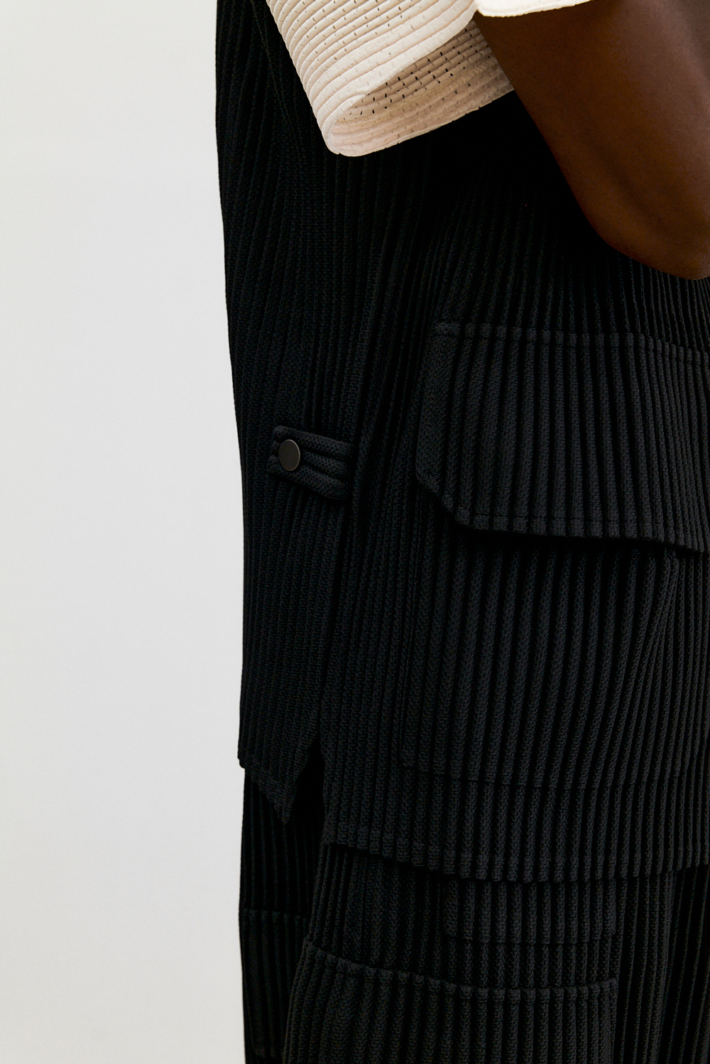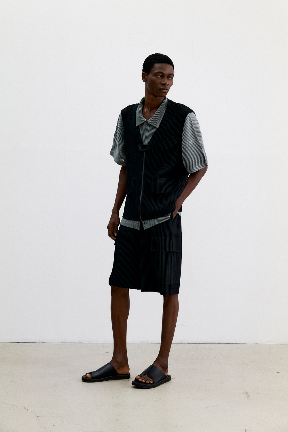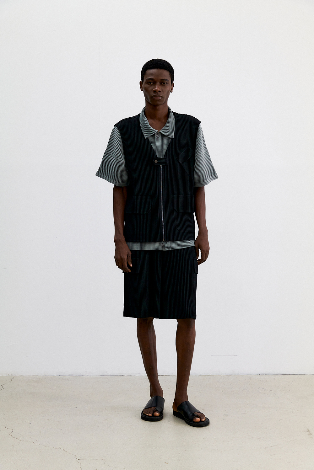 몽플리쎄 남성 유틸리티 아웃 포켓 플리츠 베스트 블랙