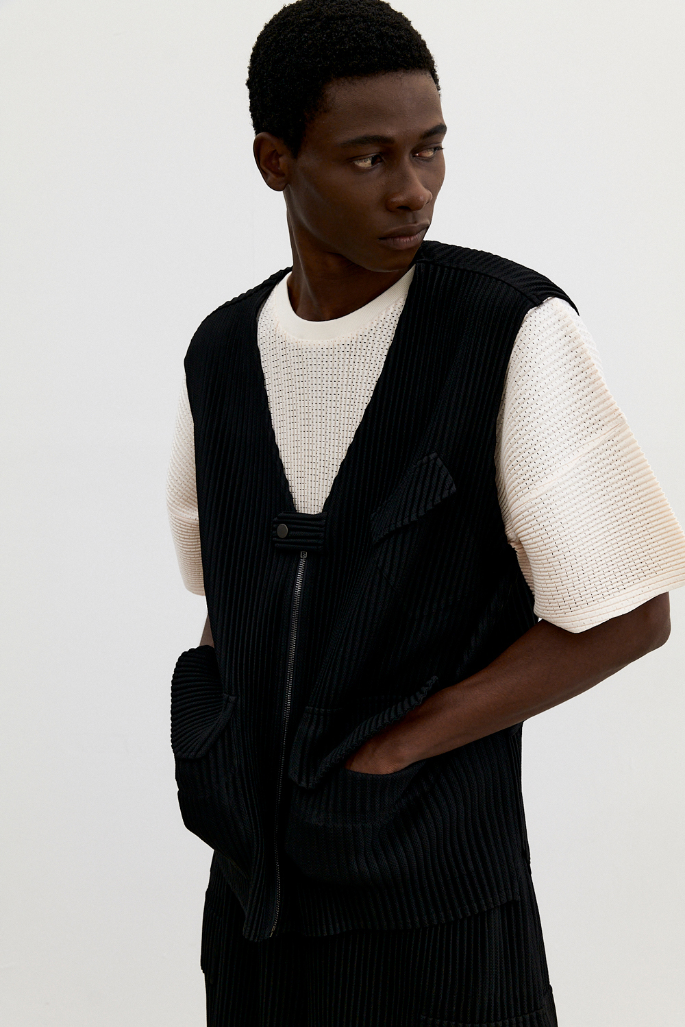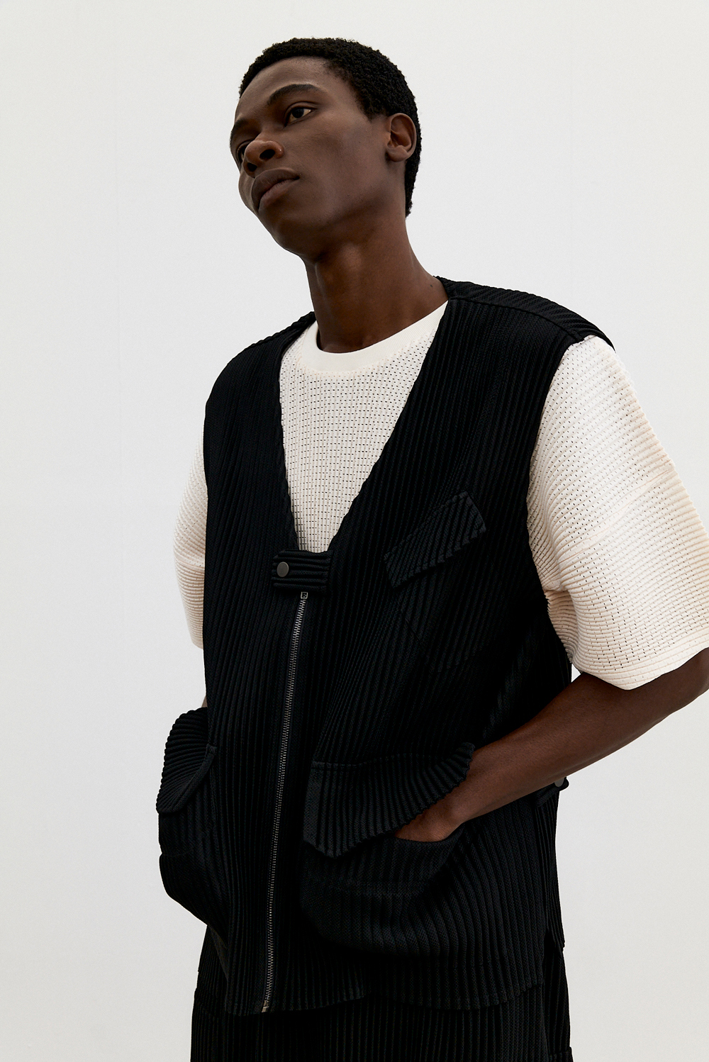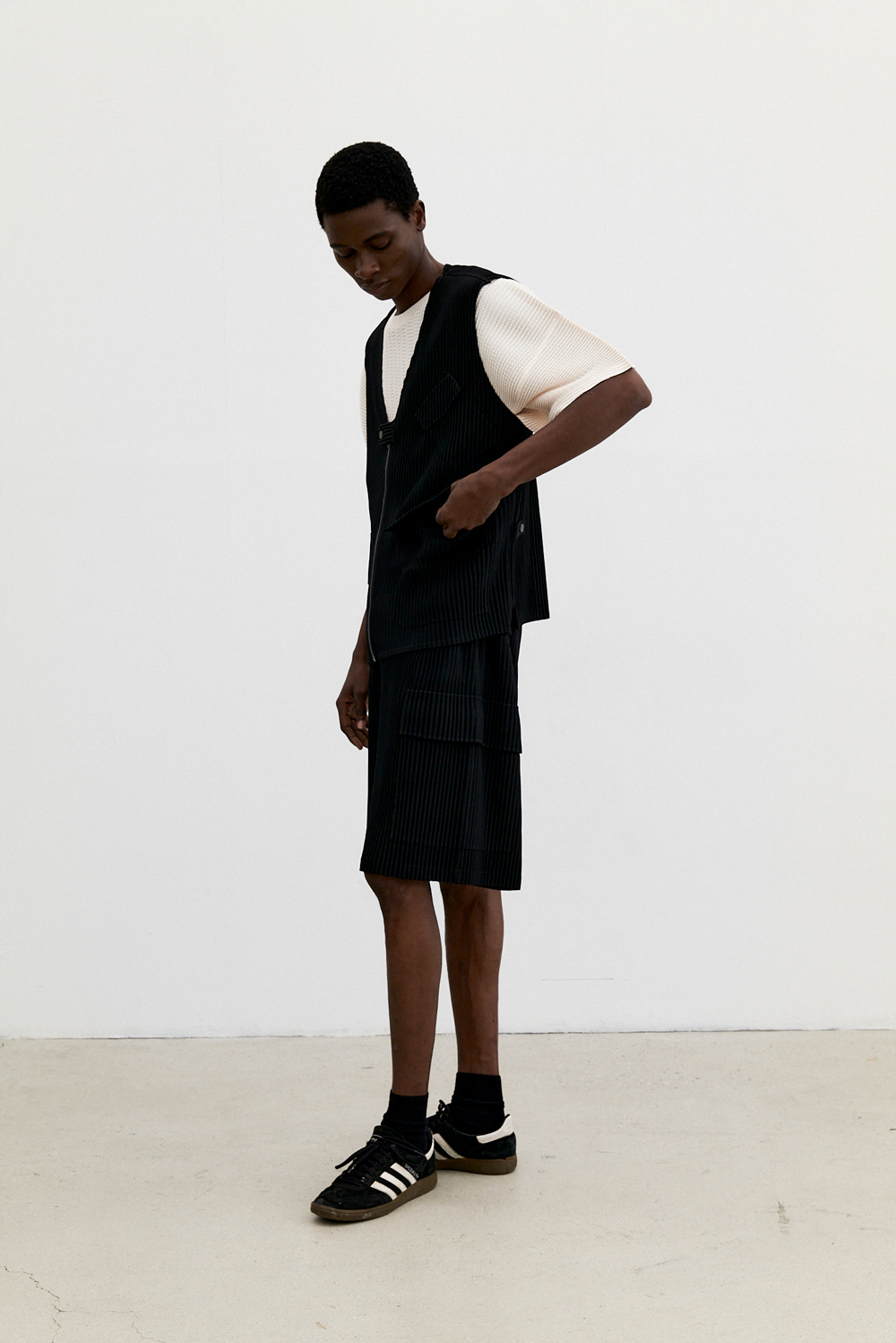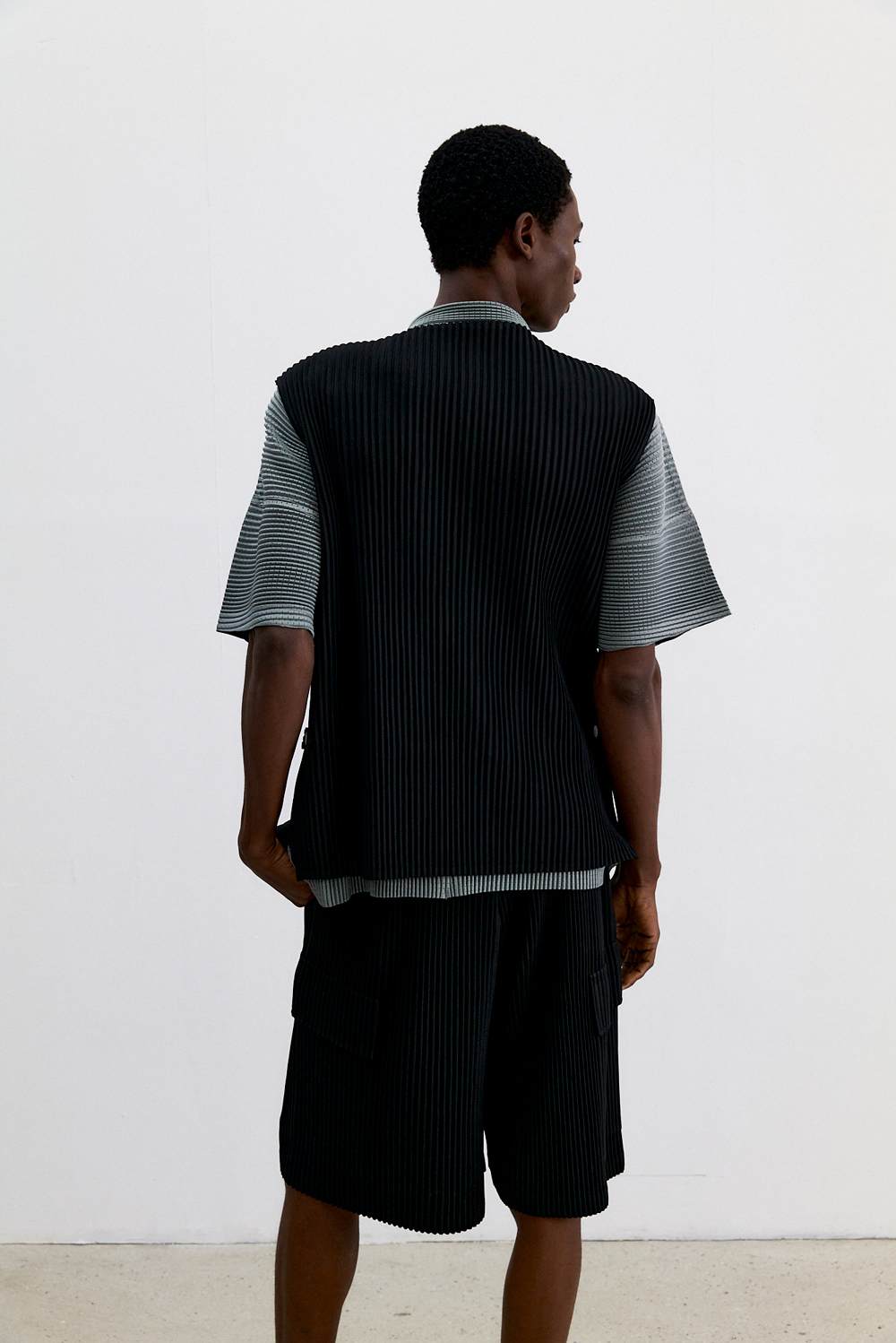 몽플리쎄 남성 유틸리티 아웃 포켓 플리츠 베스트 블랙