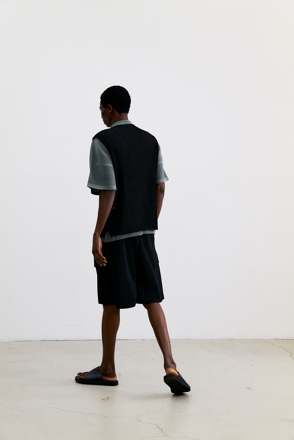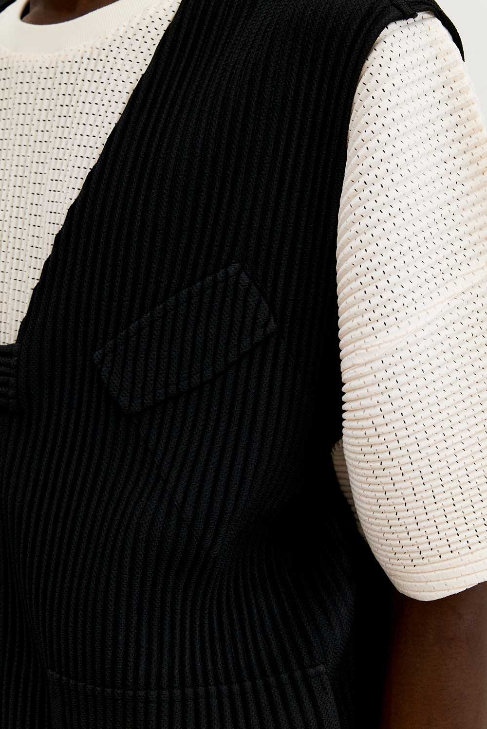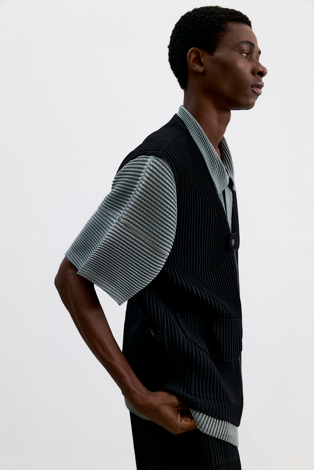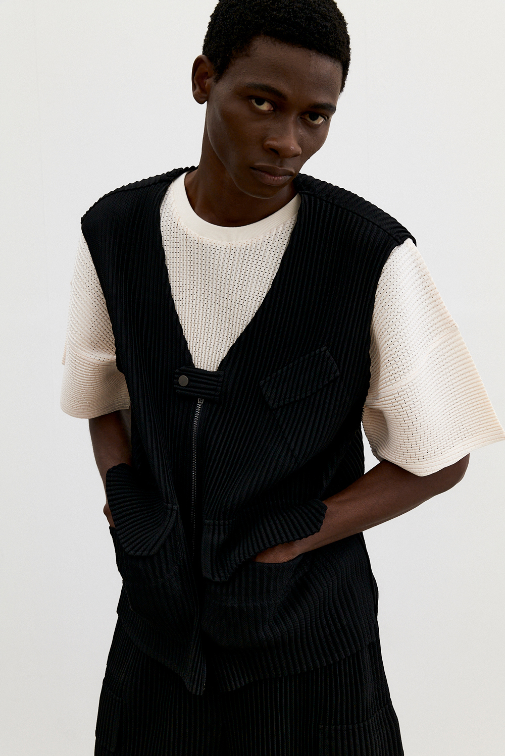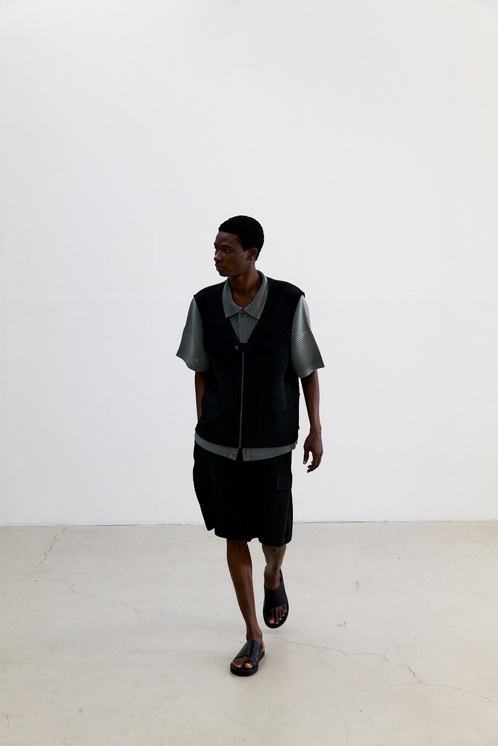 몽플리쎄 남성 유틸리티 아웃 포켓 플리츠 베스트 블랙