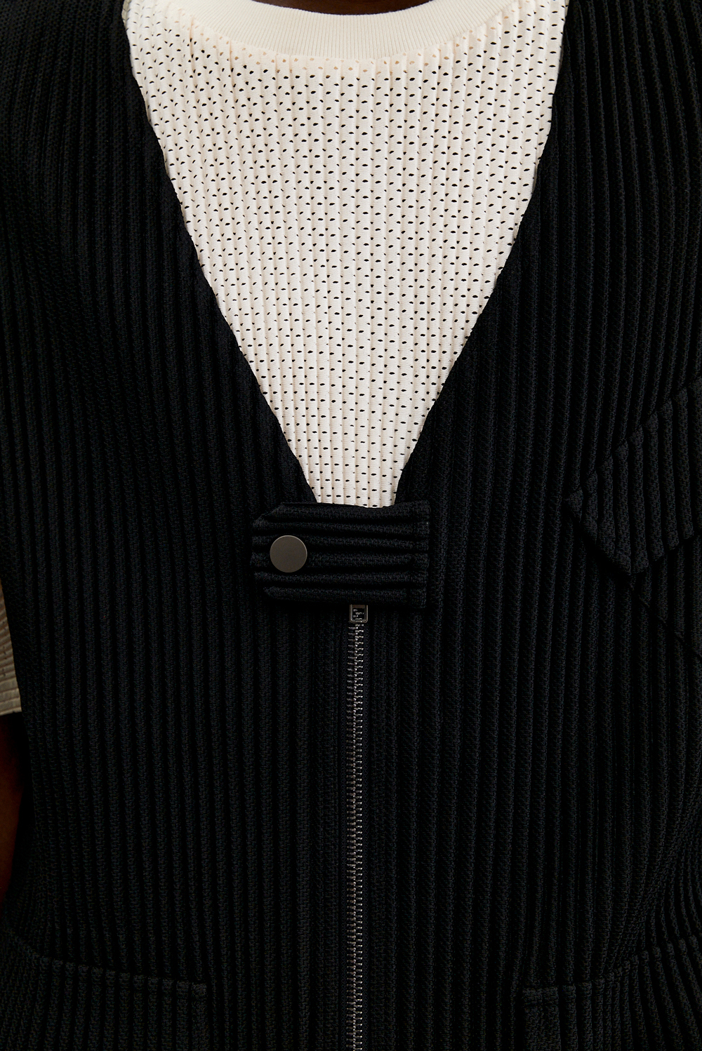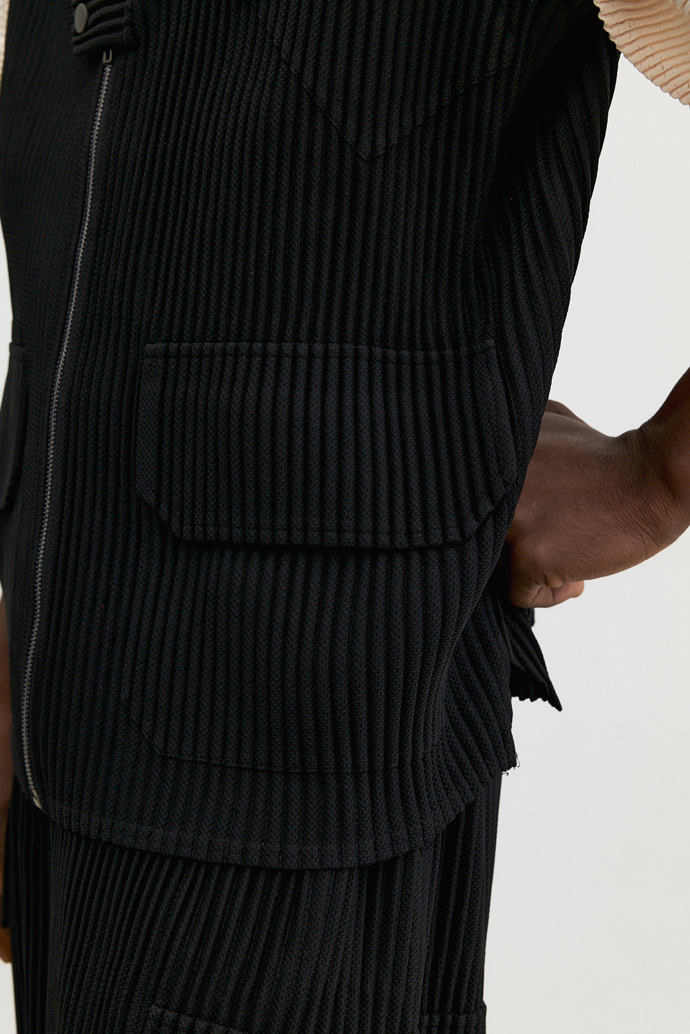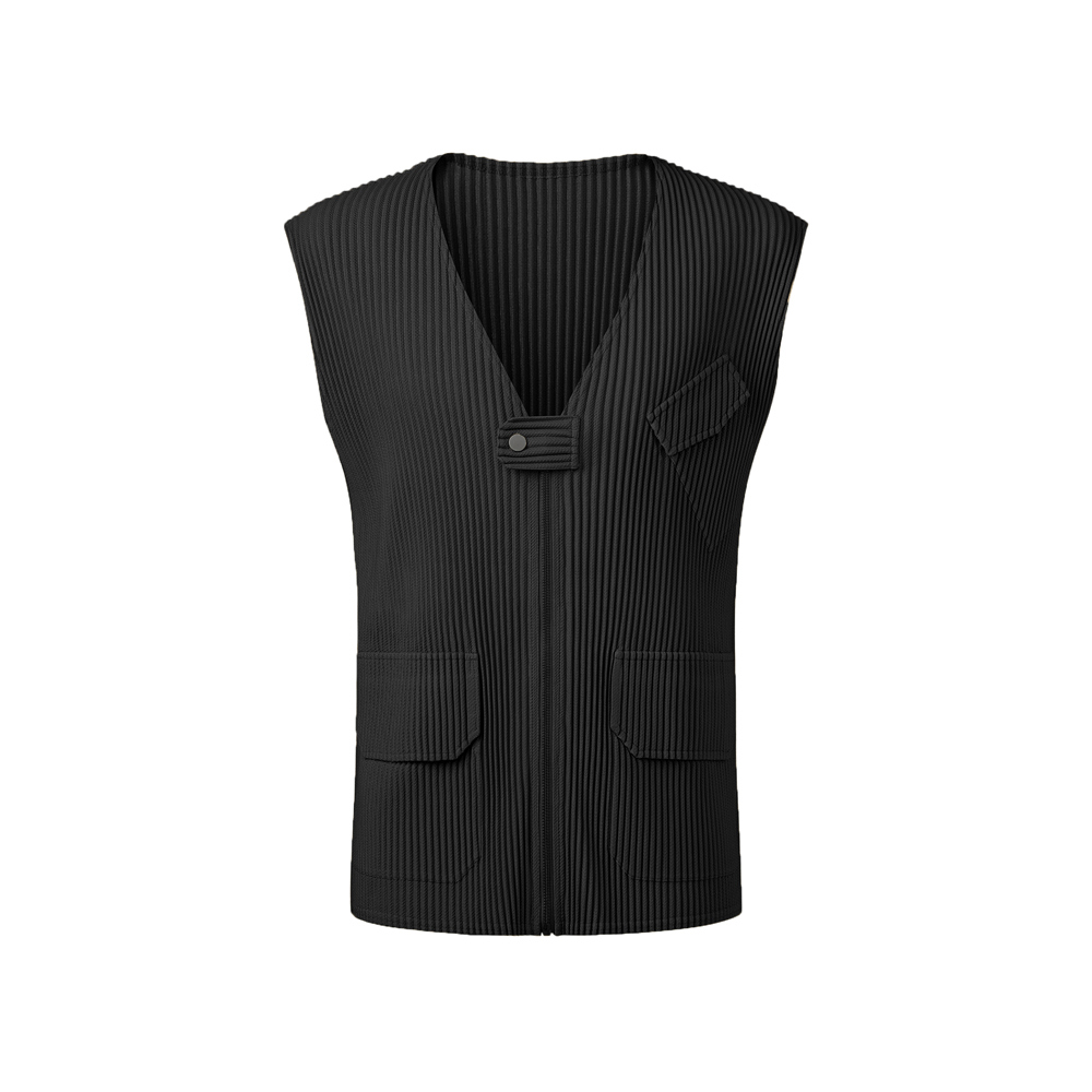Monplisse Men Utility Out Pocket Pleats Vest Black