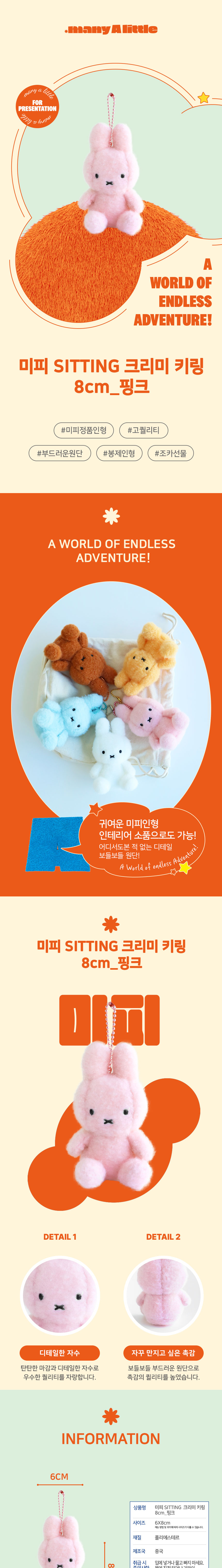 매니어리틀 미피 SITTING 크리미 키링 8cm 핑크