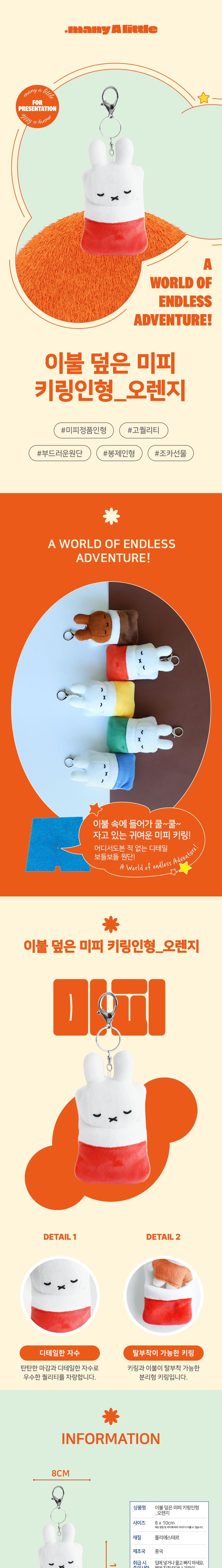 매니어리틀 이불 덮은 미피 키링인형 오렌지