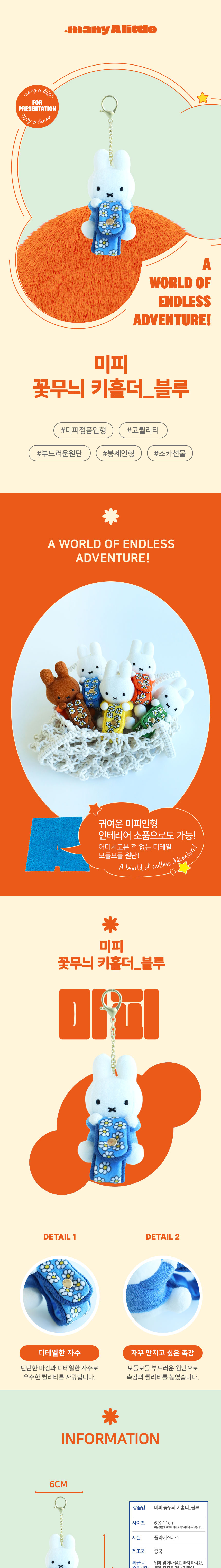 매니어리틀 미피 꽃무늬 키홀더 블루