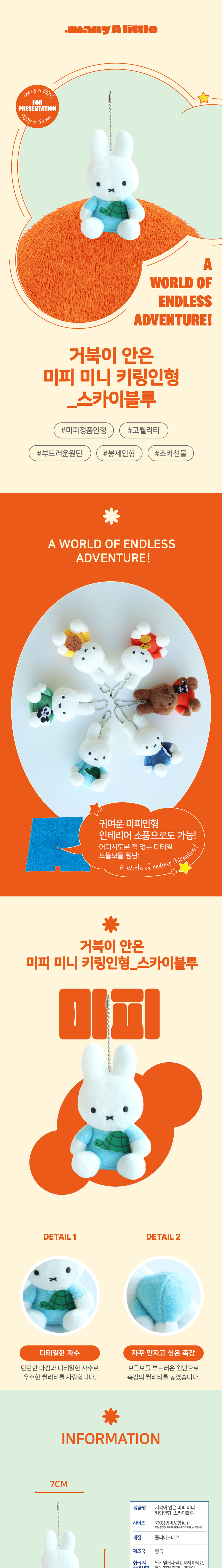 매니어리틀 거북이 안은 미피 미니 키링 인형 스카이블루