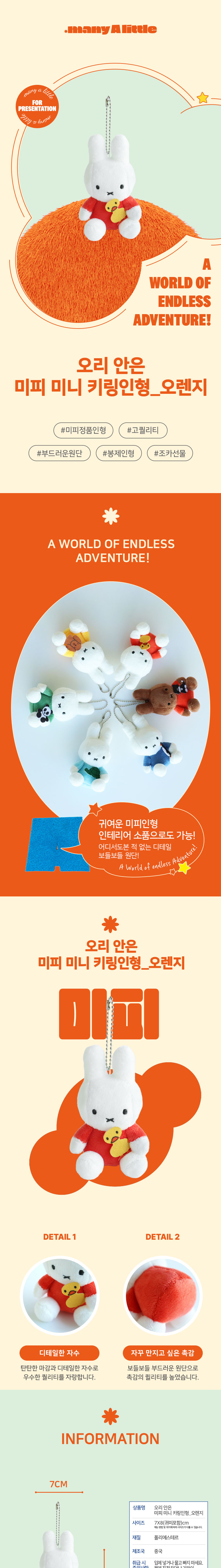 매니어리틀 오리 안은 미피 미니 키링인형 오렌지