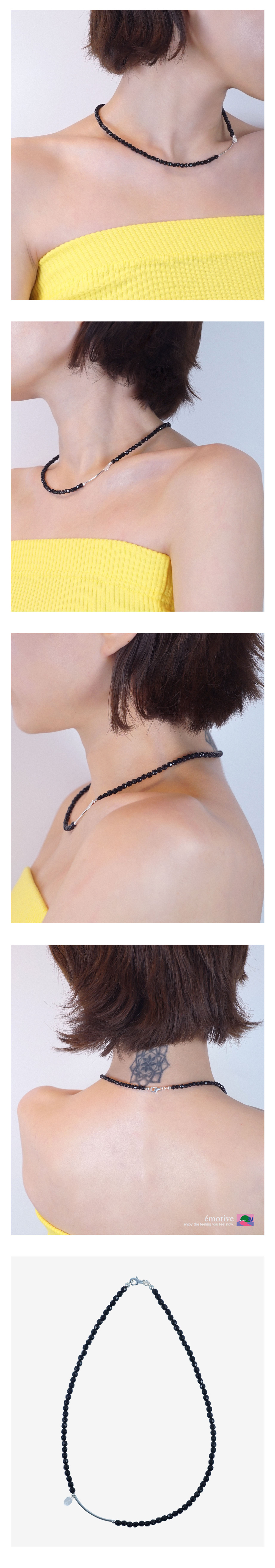 오닉스 컷팅 원석 silver bar 포인트 - Material : silver 925+원석 - Size : 모델 사이즈 M 착용 / 오닉스 4mm