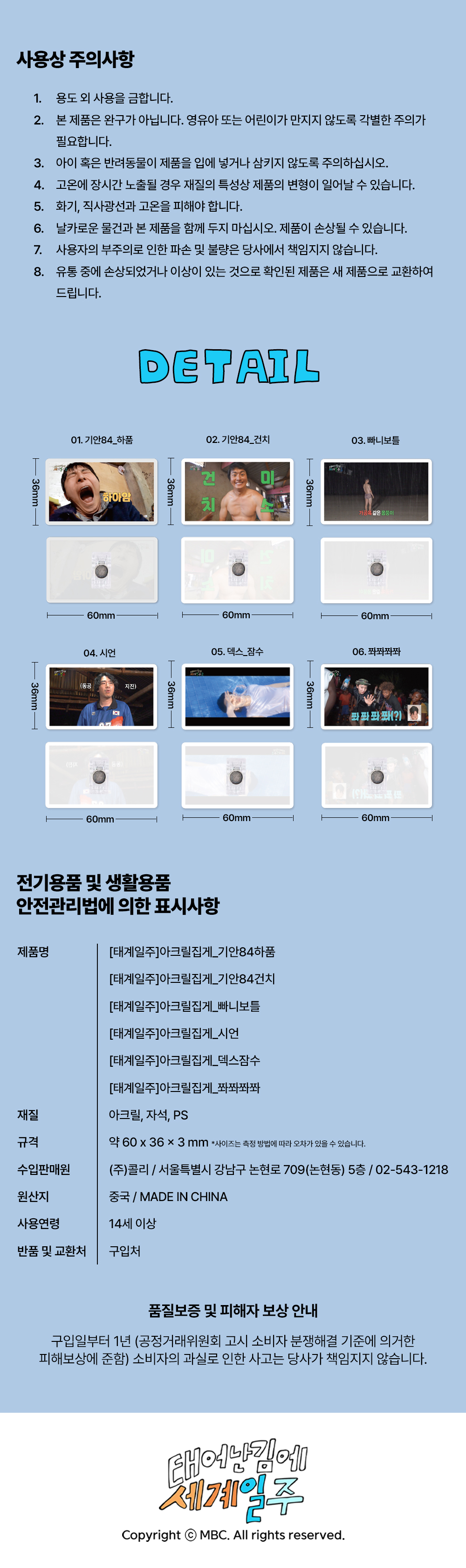 콜리 태계일주 아크릴 집게 6종 택1