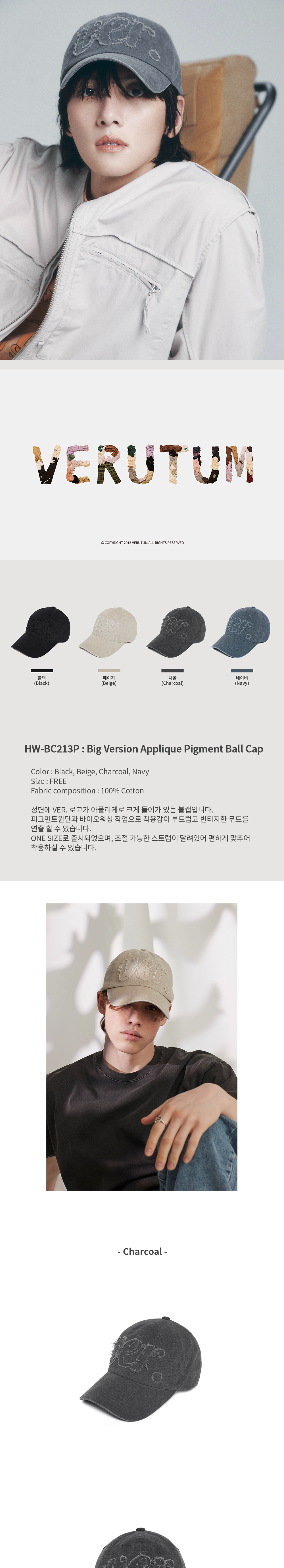 베루툼 빅 버전 어플리케 피그먼트 볼캡 차콜