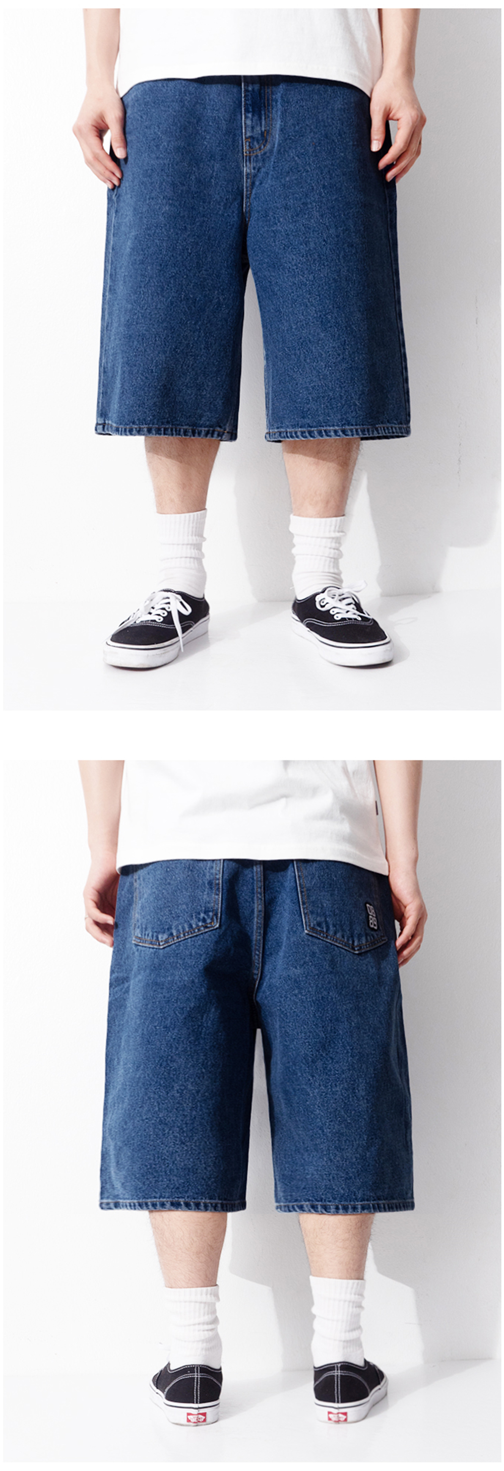 데님 원단을 사용한 버뮤다 쇼츠입니다. 올드스쿨한 무드가 느껴지는 컬러감을 구현했으며, 대중적이면서도 여름에 어울리는 무드를 연출하였습니다.