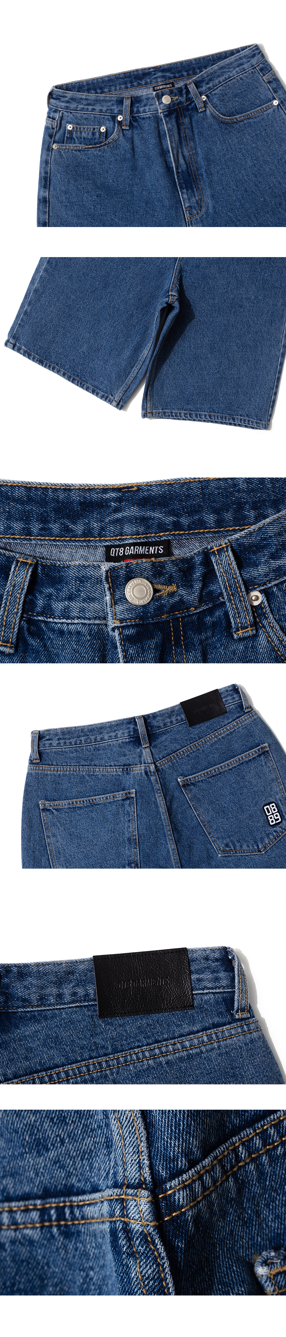 큐티에잇 가먼츠 데님 와이드 버뮤다 쇼츠 딥 블루