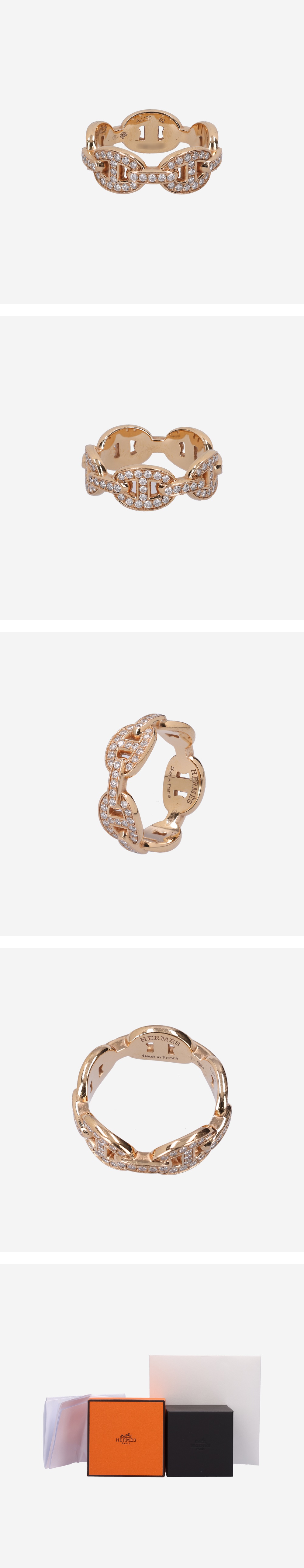 [A등급] Hermes Vintage Chaine d’Ancre Ring in 18K Rose Gold with Diamonds Size 52