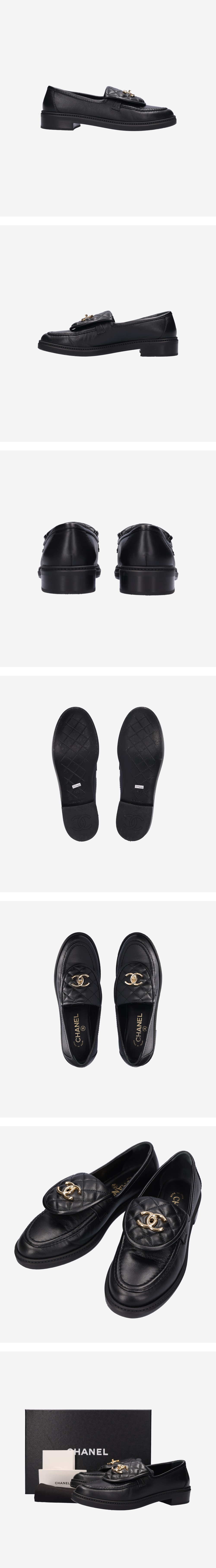 [B등급] 샤넬 G45474 로퍼 램스킨 블랙 골드 38.5
