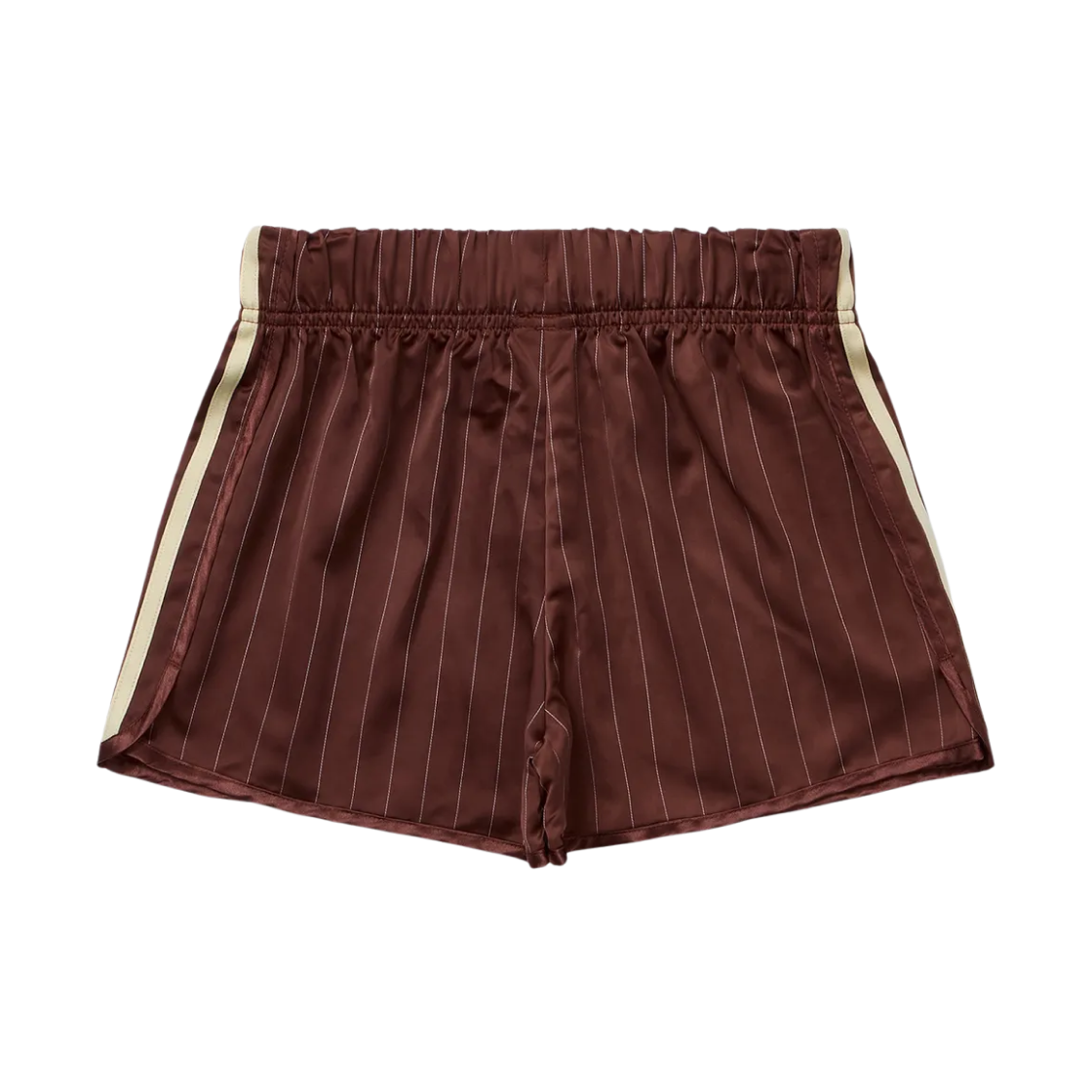 (W) Adidas Pinstripe Satin Shorts Brown - KR Sizing